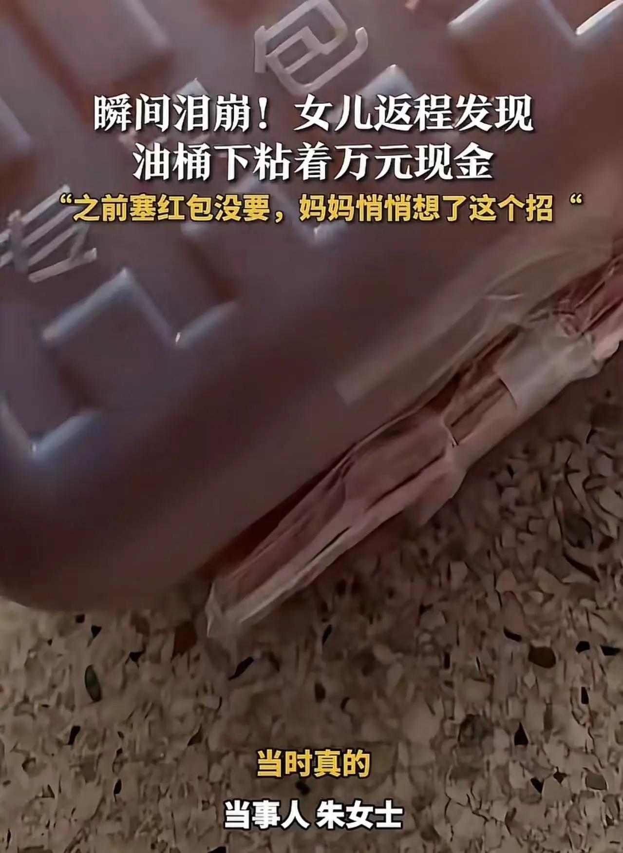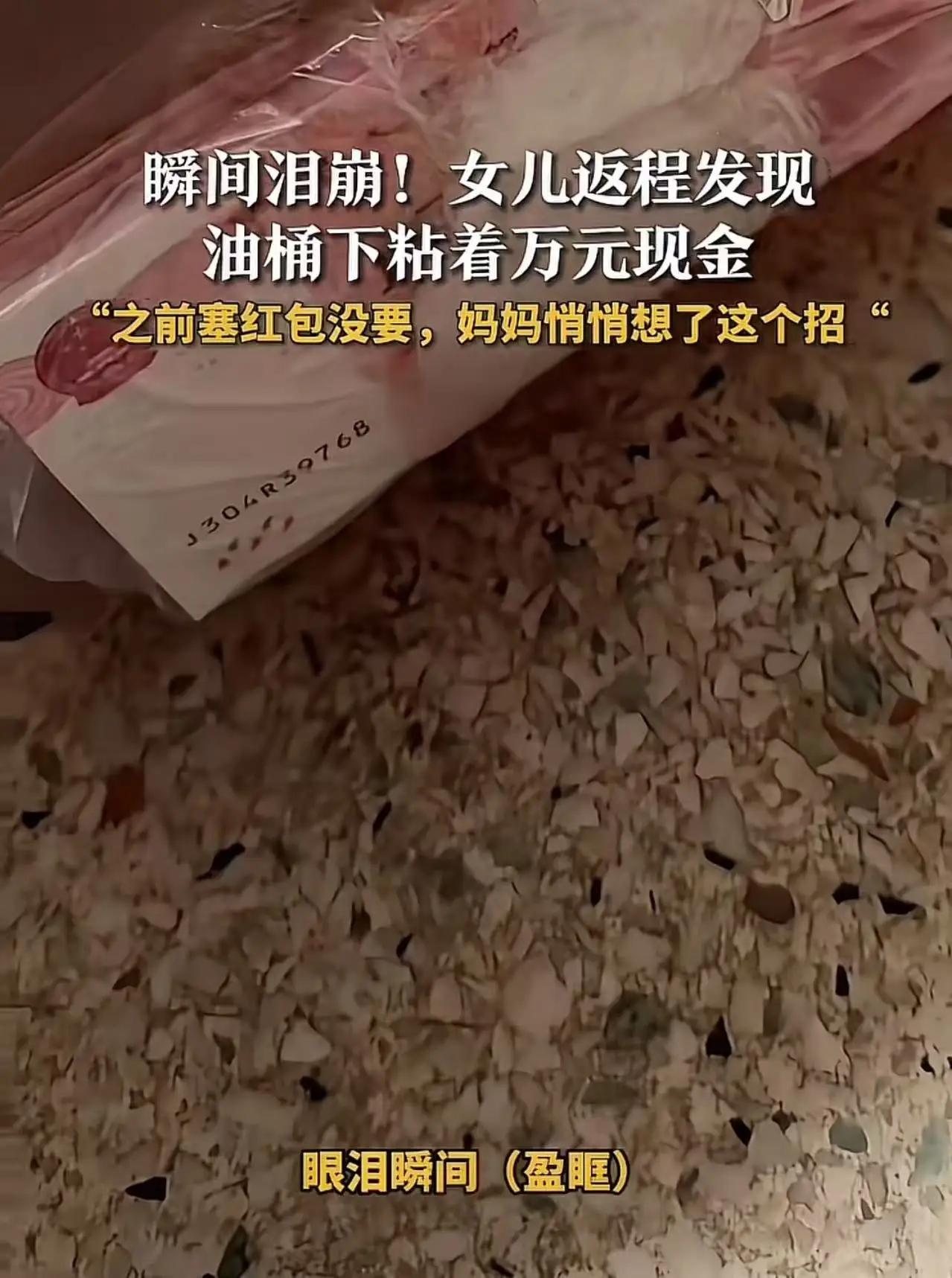 江苏扬州icon,女儿返程发现油桶下粘着万元现金,瞬间泪崩!女儿:“她担心我在外面过得不好,给钱又怕我拒绝,就用这种方式偷偷给我钱……” 年关将至,返程的列车上,一段温情瞬间温暖了无数人的心。江苏扬州,一位女儿在归途中无意间发现油桶底部贴着一叠崭新的万元现金,瞬间泪如雨下。这不是简单的金钱,而是一份沉甸甸的爱与牵挂。 女儿哽咽着说:“妈妈怕我在外面生活拮据,偷偷给我钱,又担心我会拒绝,才用这种方式悄悄塞给我。”一份朴实无华的母爱,穿越千里,用现金藏在油桶底下,用最“土”的方式表达,却触动了无数人的心弦。 这背后,是多少远离家乡奔波打拼的年轻人的缩影。漂泊在外,多少次想家,多少次在寂静的夜晚感受到内心的孤独和无助。家,成为每个人心灵的港湾,而父母的爱,永远是这港湾中最温暖的灯光。 这“隐秘的现金”不仅代表着物质上的支持,更是对女儿生活的细心关怀和对未来的美好期盼。它让我们看到,亲情无关形式,有时一个小小的细节,就能承载巨大的爱。平凡的生活,也能迸发出最动人的力量。 细想这份情感,我们不禁反思:现代社会节奏飞快,人与人之间的沟通往往变得疏离。而父母对子女的爱依旧深沉,只是表达方式变得更含蓄、更“接地气”。或许,正是这些细小而温暖的举动,构筑了无数平凡却珍贵的家庭故事。 你是否也曾收到过这样的“秘密关怀”?又或者,你想用怎样的方式,向远方的家人传递爱意?欢迎分享你的故事,让我们一起感悟亲情的力量,珍惜身边最真挚的温暖。春节将至,别忘了给家人多一份关心,多一份陪伴,因为那个藏现金的油桶,背后是无尽的牵挂和一颗深情的心。油桶底下粘着1万大钞女子遇到的爱感动14亿网友