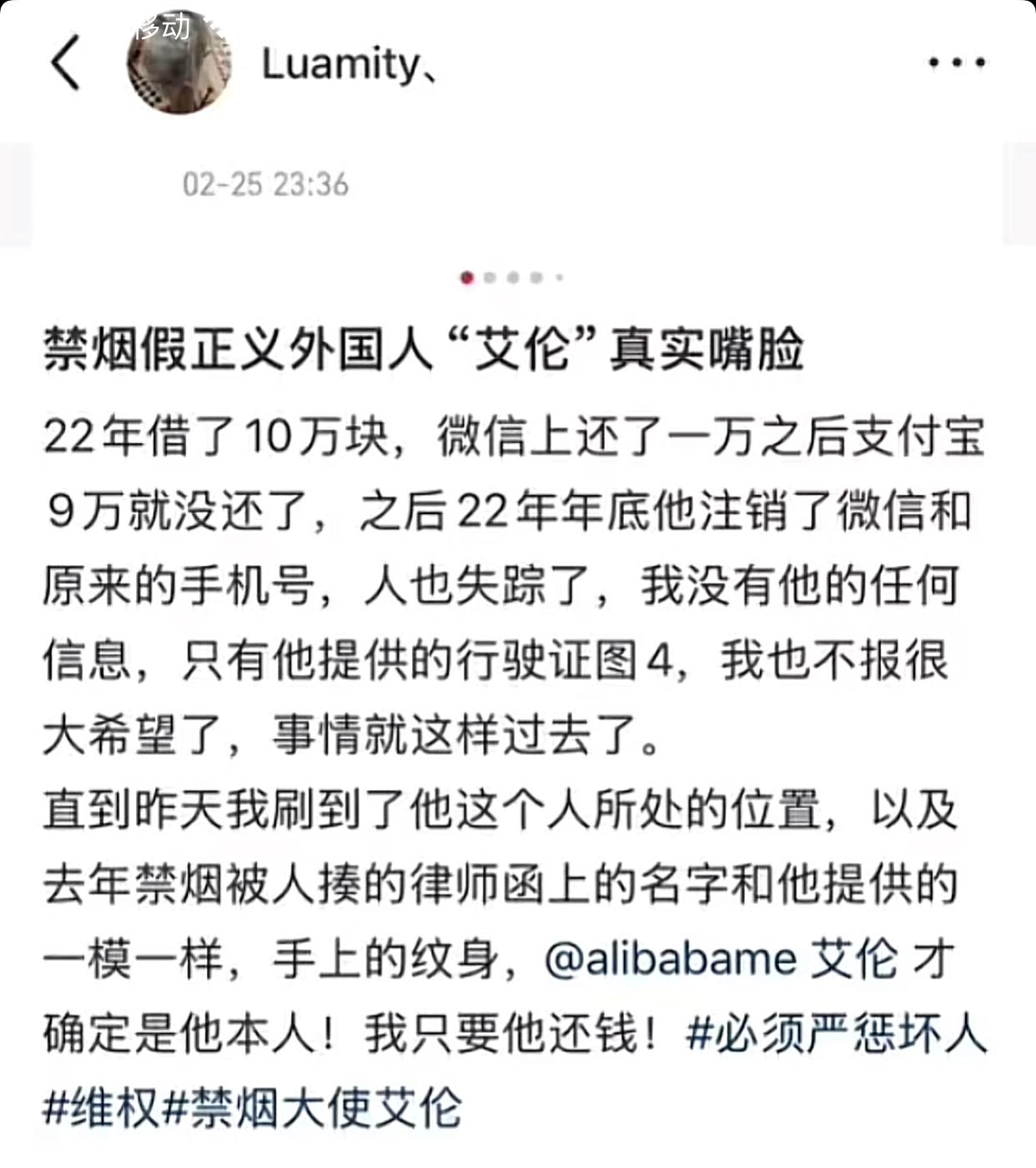 近日,看到有网友爆料,一个在中国的巴基斯坦籍男网红借钱不还,根据网友所述,在2022年的时候,对方说他在中国不能贷款,英国有套别墅,要借10万,到时候把别墅卖了就还她,该网友信了,于是就借了他10万,之后对方还了1万,至今还有9万未还… 我好奇去搜了下这个外籍博主,原来他就是在2025年7月的时候,因在上海劝烟被推搡事件中出名的…. 翻看他过往所发布的信息,大多都是各种阻止公共场合吸烟、阻止家暴和乱丢垃圾之类的视频,有网友说,早期他就是用中国女生博流量的,并且他在巴基斯坦是有老婆孩子的… 这不一个在中国的俄罗斯女博主也发视频劝告中国女生小心这个男博主,起因是这位俄罗斯女博主看到他的一个视频,他吐槽在约会中国女生时真人和照片差距太大,并请她们不要再用美颜滤镜… 结果这位女博主之后在健身房遇到了他,发现和视频上完全是两个样子,现实中是一个很黑很黑的人,但他却是装自己是英国人,说自己是中英混血… 她发视频吐槽这人,结果还被对方的真爱粉攻击了… 她实在想不明白这人为什么会火,虽然公共场合吸烟是不好的行为,但你不能把镜头直接怼对方脸上去,还态度很不友好的指着对方说,不要在这抽烟,把烟灭掉!其实是可以更礼貌的去劝阻的…如果是在俄罗斯,他这样搞早就被打了~ 这位女博主最后劝告中国网友们还是抵制一下,这个人不行的,而且很喜欢在各种社交平台上约会各种女生,然后自己用的美颜滤镜比任何女生用的都夸张,不要被他的个人主页所迷惑,因为很可能第二天你就变成他的素材了…而且他在外网上是大量的评论中国人,是个很双标的人! 其实从他发的那些视频来看,他选的赛道确实很容易火,用粗糙的语气曝光公共场合吸烟的人,可以很好的迎合那些讨厌二手烟的人,粉丝多了又可以从中挑选一些女粉出来约,又吐槽美颜滤镜,又可以迎合部分男粉,随着粉丝多了又可以接商单、挂链接、收礼物,最后不仅得到了男女粉丝的拥护,还把钱给赚了~[吐舌]