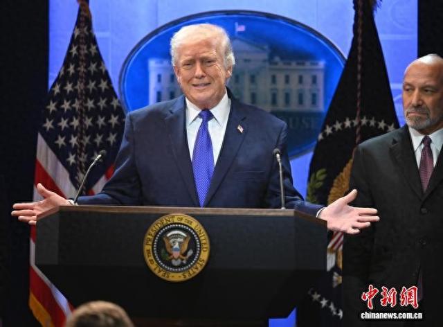 当地时间2月20日,华盛顿,美国总统特朗普在白宫就最高法院关税裁决举行记者会。中新社记者陈孟统摄