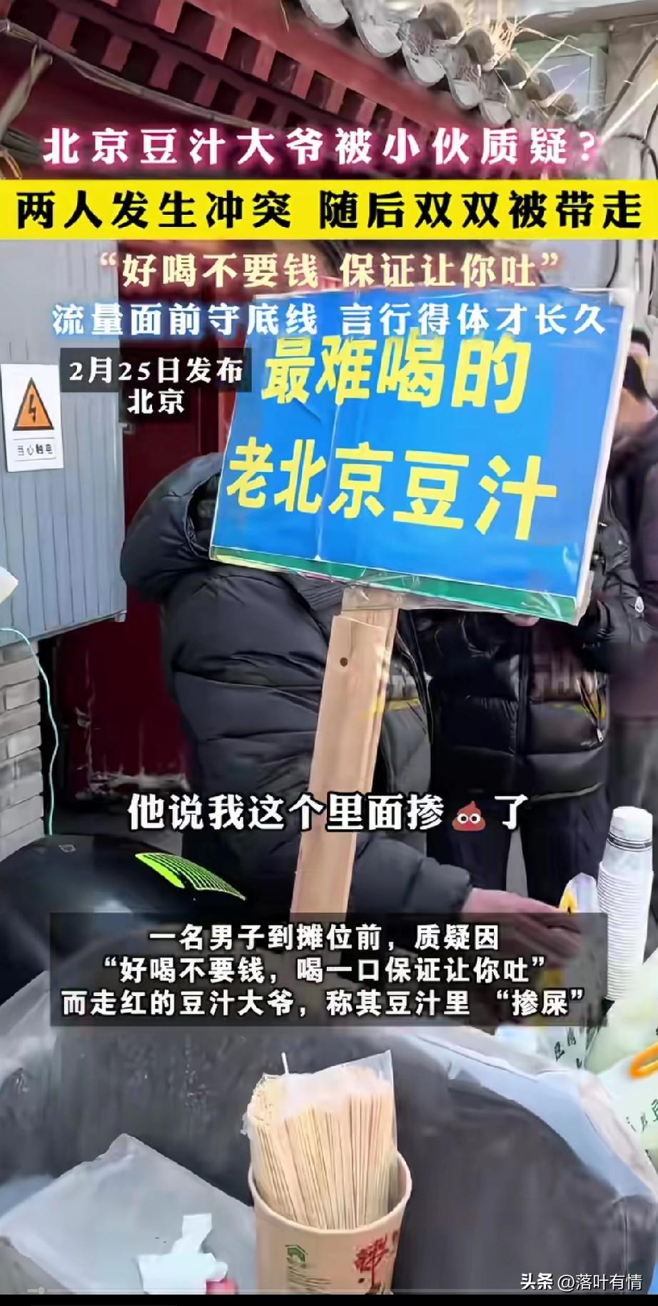 北京豆汁大爷被小伙质疑? 两个人发生冲突, 最后叔叔将小伙子带走了, 事情原来是