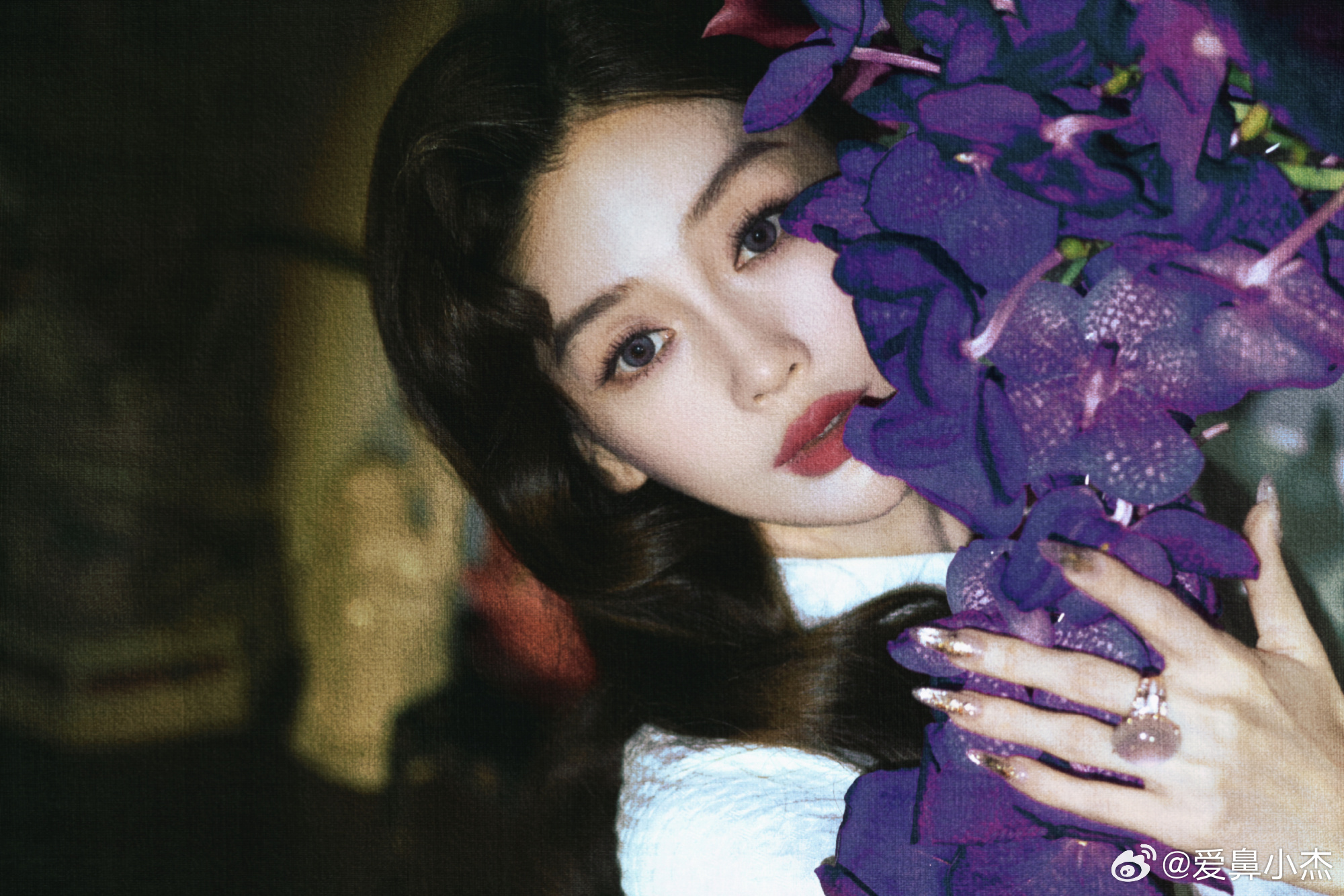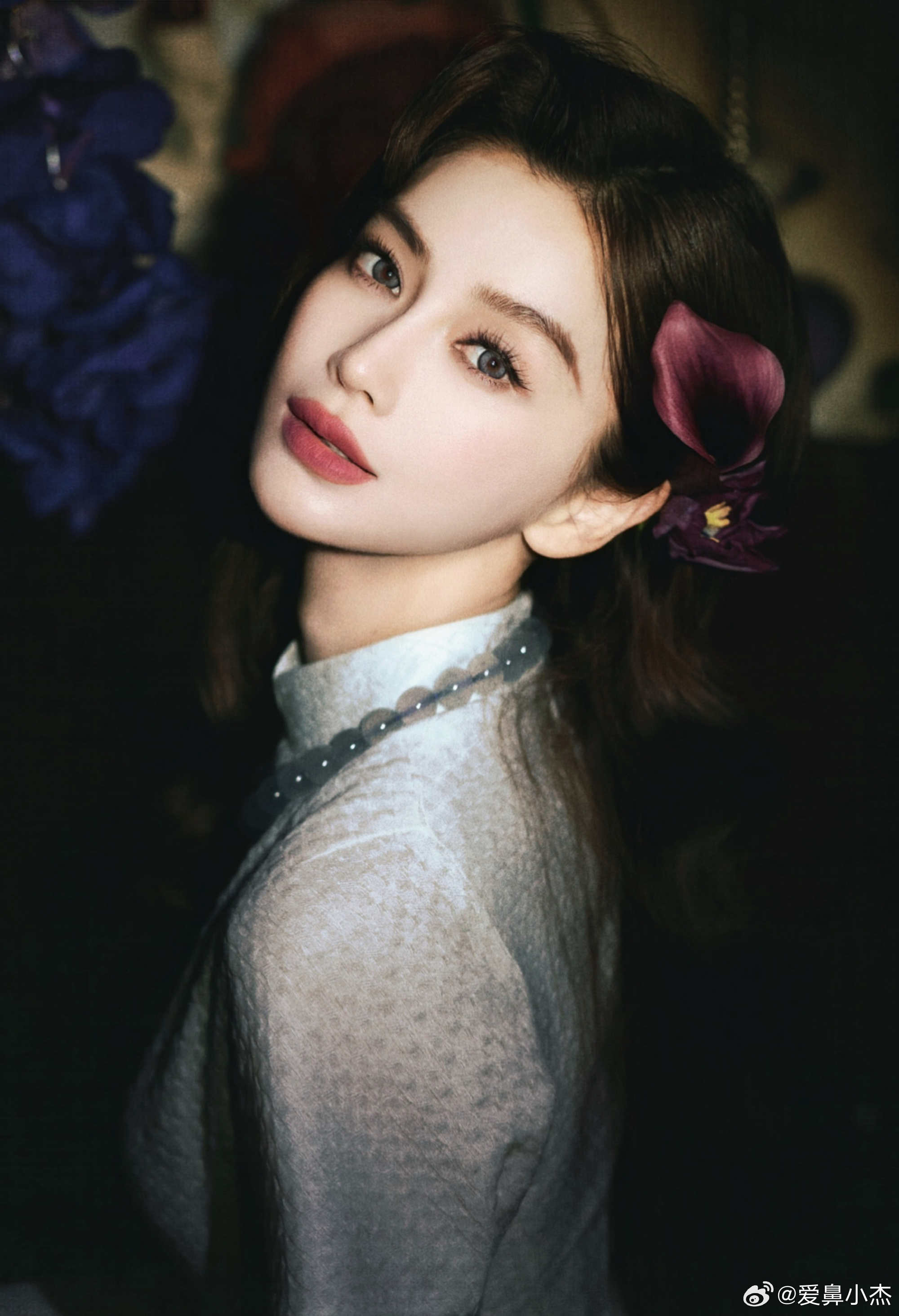 Angelababy金白开摄影 |angelababy 当紫兰遇见红瓣,当旗袍遇见胶片,便有了这组跨越时光的温柔。低头是花影,抬眼是星河,每一缕发丝,都在诉说着旧时光里的浪漫。