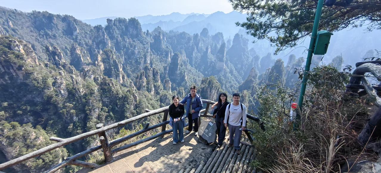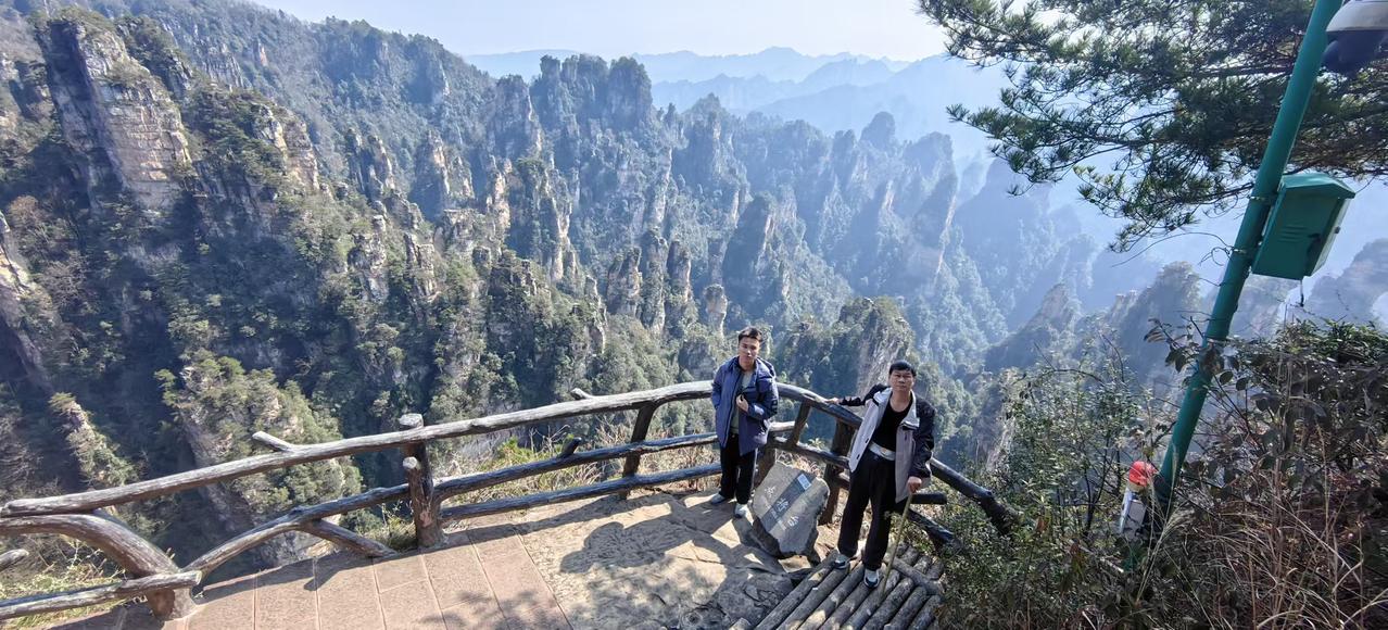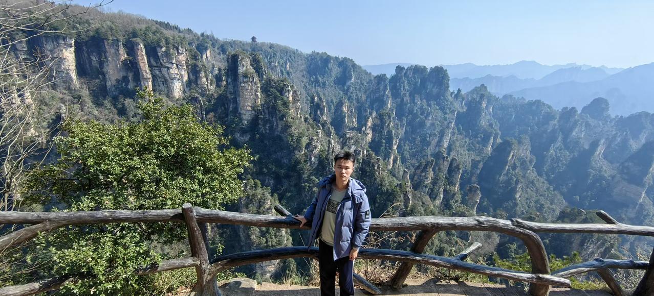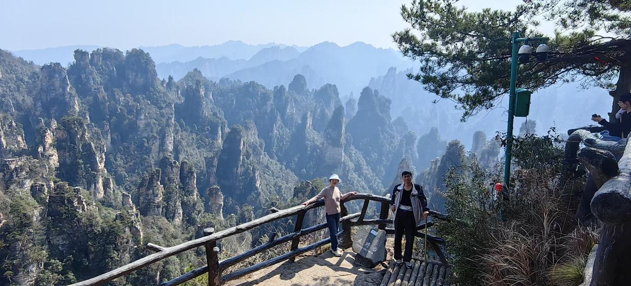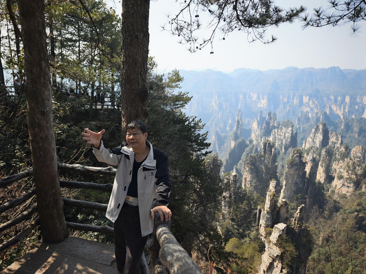 张家界第2日游记(2.21) 旅途疲惫累煞人, 春节假期莫枉春, 景点高速凭添堵, 走马观花难遂心。 环环相扣时来紧, 过罢此店到彼村。 归途千里行三日, 欠交游记未续文。 深圳昨昔依昏沉, 自责辍笔拖至今。 难得周六心如镜, 芸轩忆游书见闻。 首日西进东出门, 翌约东入近午晨。 张家界美风景好, 还是东门最宜甄。 入园改前一时辰。 索道稍候半可轮。 往返穿梭车摆渡, 游刃有余客两分。 贺龙公园拜军魂, 天子山上傲骨存。 云青岩壁观西海, 景幻无常多风云。 仙女散花未觉真, 御笔峰前石嶙峋。 巨笔如椽立千仞, 锋芒错落形有神。 画中有画匿大隐, 千军万马藏峰林。 点将台僻少游客, 小径崎岖幽深深。 空灵神韵独厚载, 天工秀嶂簇排排。 毕竟精华遮不住, 只缘人倦怠徘徊。 四季锦绣多溢彩, 景致绝美心快哉。 君游不到点将台, 枉言张家界曾来! 西门取车时有待, 临变游赏黄石寨。 老夫不知台阶苦, 庵堂索道车不开。 上下沉重步履哀, 往返蹒跚腿累歪。 纵使山川景色美, 怨声载道耿于怀。 晚宿吉首明将快, 且行且归莫可猜。 人在囧途前不知, 最怕高速堵一块。