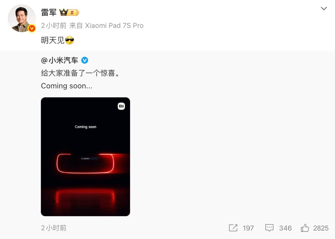 雷军官宣,小米首款VGT超跑明日亮相! 2月28日,雷军宣布小米汽车VGT超跑概念车将于明日发布,该车为小米与《Gran Turismo》合作打造的首款Vision Gran Turismo概念车,预计在2026年3月2日至5日西班牙巴塞罗那MWC展出。作为GT系列自1997年诞生以来首款正式收录的中国品牌量产车,小米VGT将展示前沿电动化与线控技术,并助力小米向高端科技性能品牌跃迁。小米VGT超跑明日发布