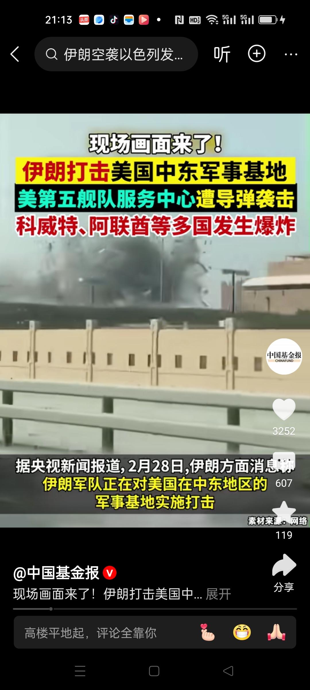伊朗反击正式开始,导弹袭击美军在中东的各个军事基地。科威特,阿联酋还有巴林的美军第五舰队指挥中心都遭到打击。 以色列也发现伊朗的导弹无人机来袭,目前正在防空拦截作战,后续肯定会遭到更大的报复性打击。 受战争影响,国际油价,金价,银价攀升,比特币暴跌。 中国称美国是国际核秩序和全球战略稳定的最大乱源。 确实,美国拥有全世界最多的核武器,又到处挑动战乱,抢夺资源,就是强盗一样。伊朗并没有投降,发起反击。这必定会引起阿拉伯世界的联合反美反以色列的浪潮,这一次不会让美以称心如意的。
