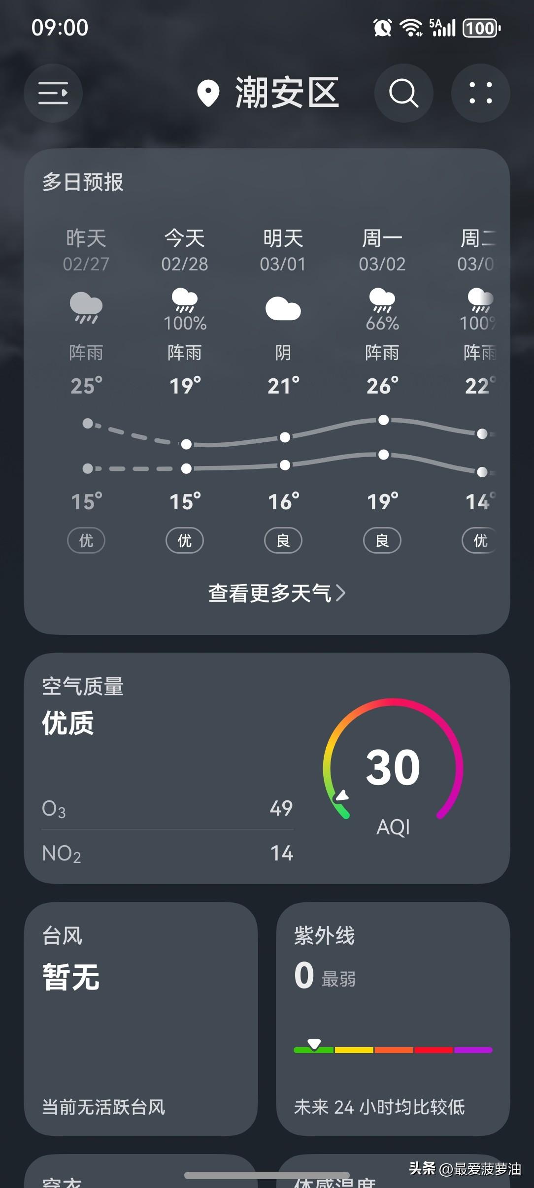 新一轮大范围雨雪来袭南方湿冷! 2月28日起三天,我国新一轮大范围雨雪天气发展,南方多地有大到暴雨,北方部分地区降雪,受雨雪和冷空气影响,南方部分地区体感湿冷,需注意防雨保暖。 今天(28日),广东多地发布今年首个暴雨预警! 未来三天,广东中北部降雨持续,2~3日受冷空气影响,气温下降3~6° C。 今天(28日),潮州有阵雨,气温15~19℃,此刻气温16℃,体感温度13℃。 今天的雨淅淅沥沥下了一整天,没停过啊!现在外面依然下着小雨,这是停不下来的节奏啊! 虽然这雨下了一天,给我们出行造成一定的影响,但相对于雨势较大的地区,我们这边的雨算是比较温和的。 今天,广东多地发布今年首个暴雨预警,新年的首场强对流天气威力还是有的。 明天孩子需要提前一天到学校报到,希望雨能够早点停下来,不然上学路上多麻烦呀!又是下雨又是塞车,光想想都觉得够呛啊!