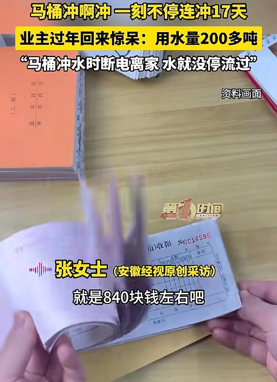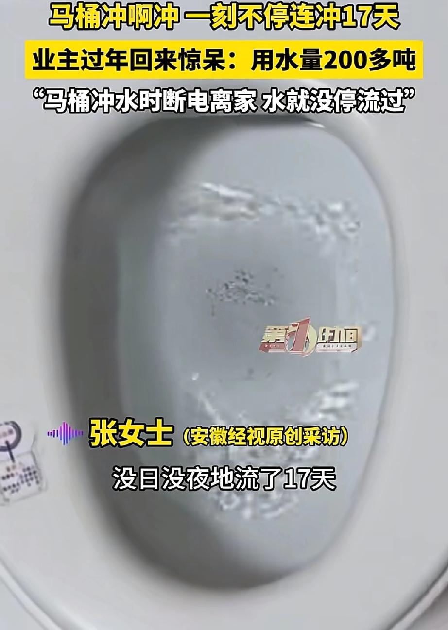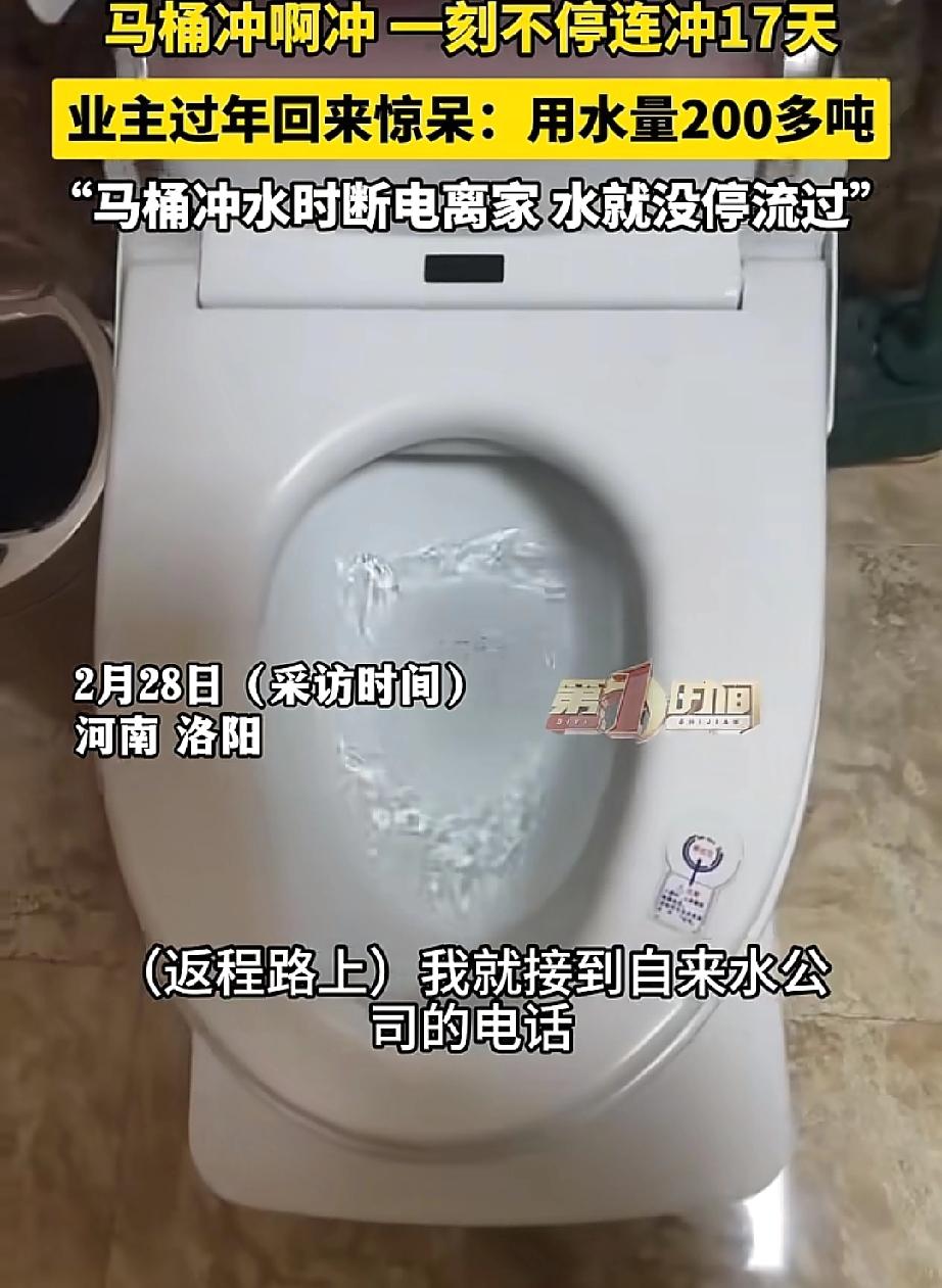 这事也太糟心了!河南洛阳,张女士过年回老家待了17天,返程途中突然接到自来水公司的电话,提醒她家里耗水异常。起初张女士以为是诈骗,回家后却发现,家里的智能马桶因为临走前的一个操作,连续冲水17天,耗水超200吨,产生了840元的水费。 据张女士说,当时出发回老家前,上了个厕所。马桶冲水冲到一半时,顺手就把电源给拔了。 这一拔不要紧,问题来了:她家那个智能马桶,当时正在冲水,电一断,里面的阀门还没来得及复位就“罢工”了。 结果就是,水关不上了,就这么一直流着,流了整整17天! 200多吨水是啥概念?按一吨4.2元算,这笔水费要840块钱。 更讽刺的是,要不是自来水公司打电话提醒她家里“用水异常”,张女士还以为是诈骗电话呢——毕竟家里没人,怎么可能用水? 这事听着是不是又冤又气?但仔细一想,这事儿其实离我们一点都不远。现在谁家里没几样智能设备? 智能马桶、智能热水器、智能洗衣机……功能是多了,方便是方便了,可出问题的“姿势”也越来越刁钻了。 就拿张女士这事来说,谁能想到,拔个电源能把马桶整漏水?可偏偏有些智能马桶,断电时阀门复位就是有延迟,甚至卡住关不上。她碰上的,就是这种“巧得不能再巧”的故障。 有网友说:“自来水公司真有人情味,还给打电话提醒!”确实,要不是人家及时发现异常,这水还不知要冲到啥时候。 懂行的网友点破了关键:“智能马桶冲水时断电,就会一直冲水。你赶的也真巧,上完厕所冲水关电,完美踩点。” 说实话,看完这事,我第一个反应是:我家那个智能马桶,出门前是不是也得检查一下? 你想想,这要是发生在自己家呢?我们平时出门,谁不是随手一关电,图个省电又安心。谁又能想到,这最平常的一个动作,能惹出这么大的麻烦? 200多吨水,那可不是个小数目,不光自家钱包受罪,这白白流掉的水资源,看着都让人心疼。 家里的智能电器越来越多,功能越来越复杂,出问题的可能性也跟着上来了。 以后出远门,除了检查水、电、气总阀,是不是也得想想,家里那些“智能”的家伙们,有没有什么我们不了解的“小脾气”? 最好临走前都亲自试试,或者问问厂家,有没有什么出门模式。 别嫌麻烦,有时候多看一眼,就能省下几百块的水费,也省下一堆闹心事。 您说,是不是这个理儿?