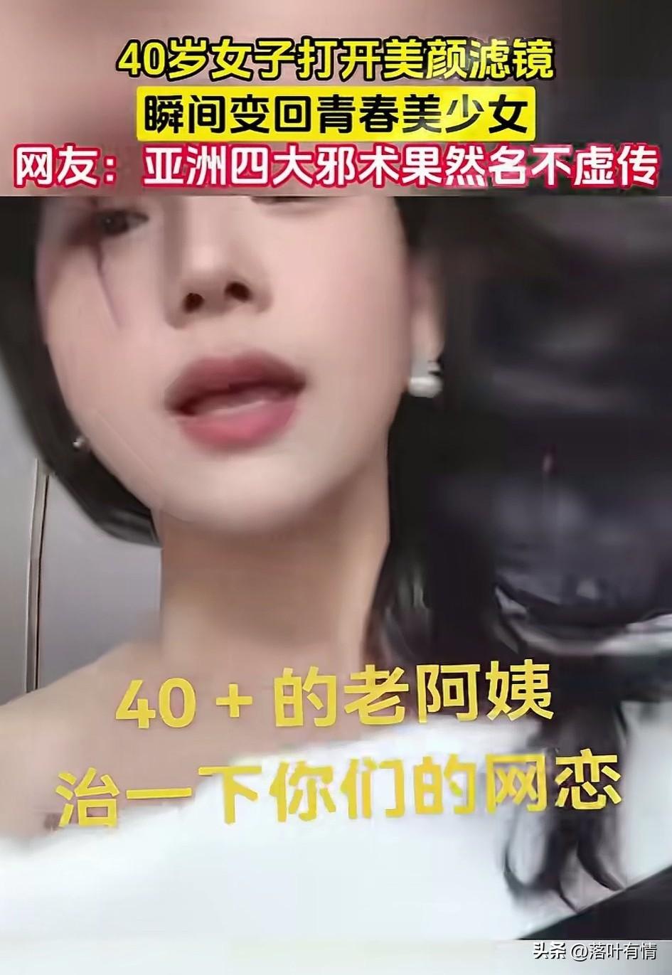 40多岁的老阿姨, 讽刺网友要网恋, 看着她长得还行, 只不过年龄有些大了, 随后她直接开启了美颜, 直接秒变大美女, 现在肤白貌美的, 谁看了谁不心动, 她表示谁开了美颜都是美女, 劝大家不要再网恋了, 大家都散了吧? 网上的都是这种开美颜的, 网友表示美颜不愧是亚洲四大邪术, 还真的是40岁老阿姨直接秒变青春少女!你觉得阿姨开美颜好看吗?