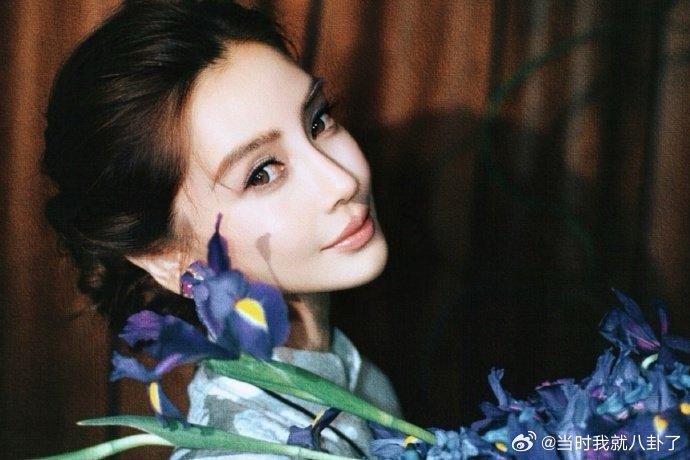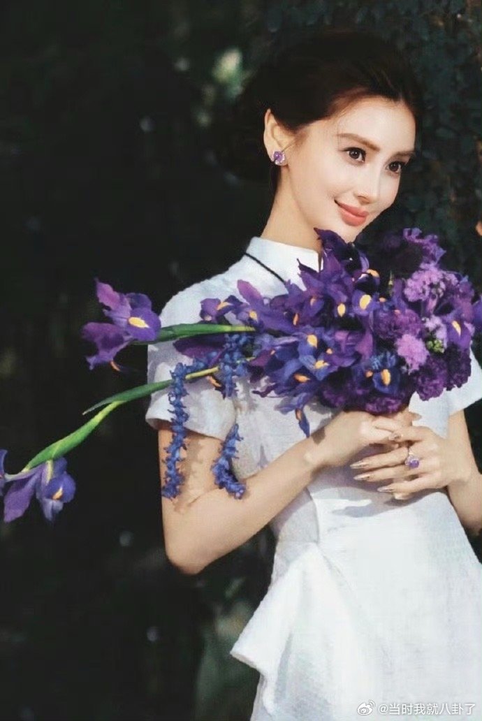 Angelababy紫瞳旗袍造型+紫色鸢尾花,妥妥国风大美人 杨颖