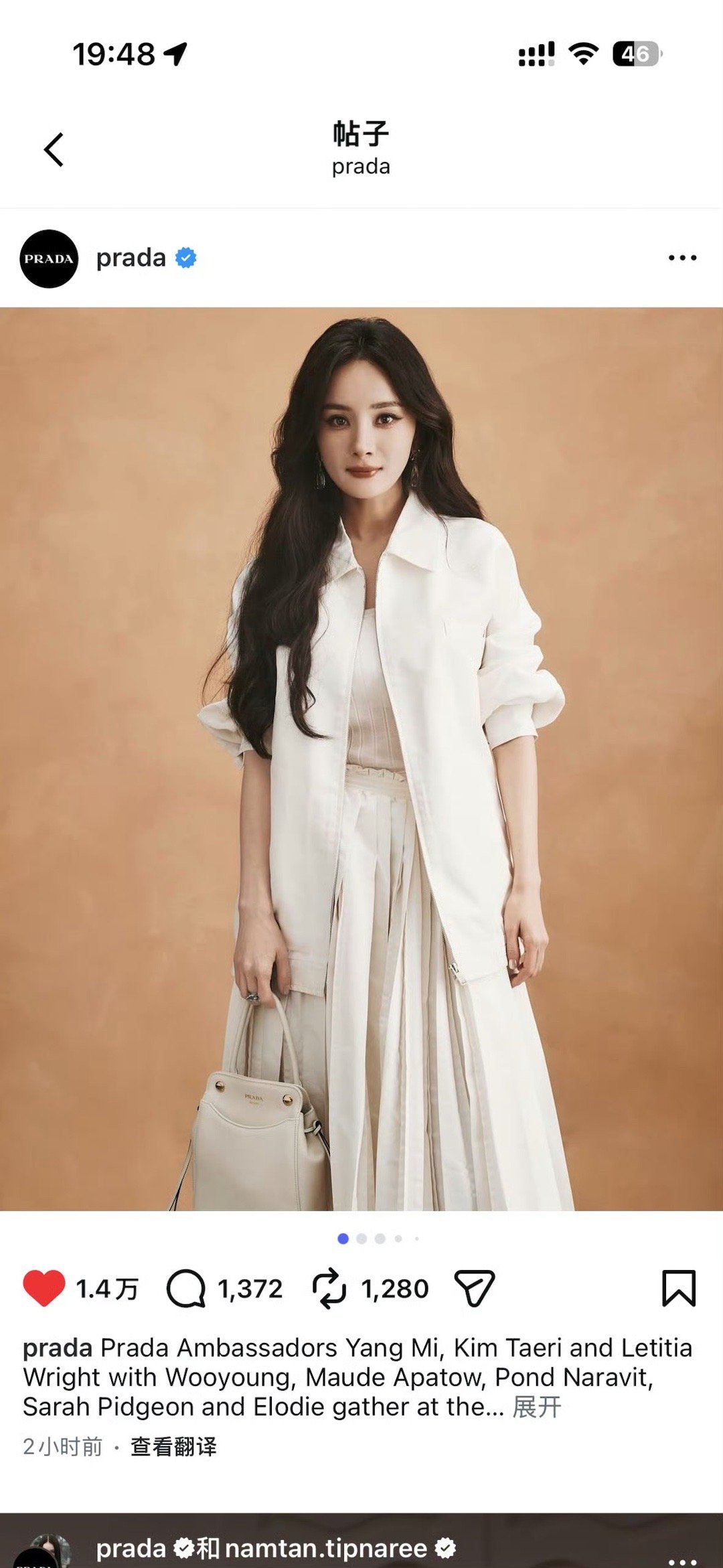 🔥无考察海外先宣空降品牌最高title 🔥vogue开年刊og封面+ 时尚芭莎 刊开季封面 🔥定制礼服亮相获封总台视后 🔥新年广告海外先行+全球地广 🔥出席米兰时装周 不到三个月内杨幂全部拿下~嗯好待遇都在这Prada女王的顶级待遇Prada全平台认领杨幂