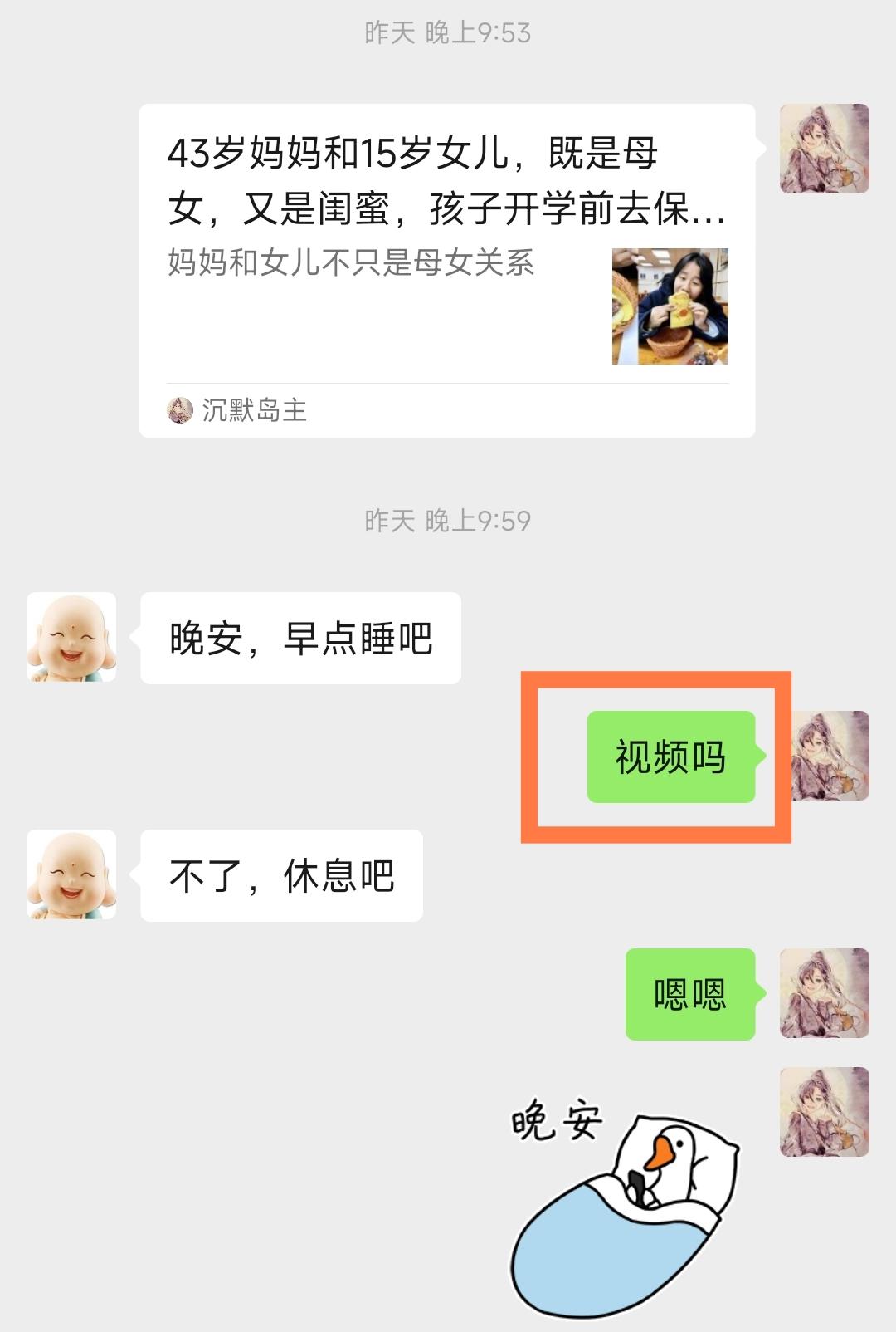 结婚16年,一次主动换来一晚上的郁闷。 昨天带女儿去保定玩了。 回来的时候晚上了,老公给我打视频,我还在外面,说了两句就挂了。 回到家晚上8点了,我就赶紧写文章。 终于把文章写完,发布了,可以休息一下了。 昨天去保定,不知道是吃的不对,还是喝的不对,还是因为冷,坐车回来的时候特别恶心。 回家后虽然难受,但还是要写完文章。 写完了,想跟老公视频发泄一下情绪。 平时都是我等着老公主动给我打视频。 昨天晚上我终于主动了一次,问他视频吗,他却拒绝我了,他竟然不跟我视频。 我好伤心,好郁闷。 今天晚上老公跟我视频,我就找他算账。 我说,我昨天好不容易鼓起勇气问你视不视频,你却拒绝了我。 我一次外向,换来了一辈子的内向。 如果我想睡觉,不跟你视频,我会直接跟你说晚安,而不会问你要视频吗? 我难得主动一次。 我既然这样问你,就是想聊几句。 你竟然不跟我视频,我太伤心了。 老公听了,赶紧给我发红包道歉。 我不依不饶半真半假的伤心,眼泪都要流出来了。 老公在屏幕那旁直喊:闺女,快来劝劝你妈呀! 哼,这就是得罪我的下场。[敲打]