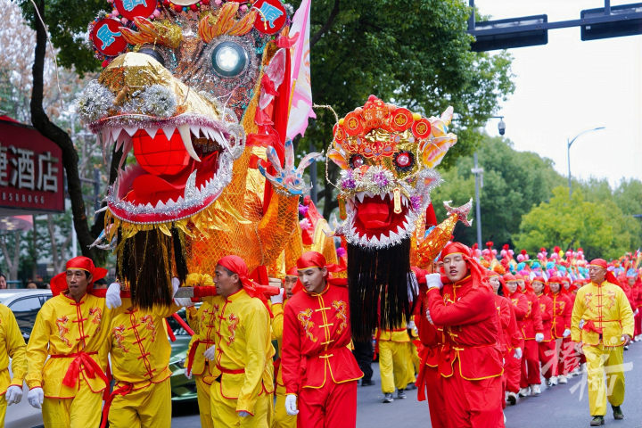 锣鼓喧天,龙腾狮跃。2月28日下午,“天南海北龙狮会浙江桐庐闹元宵”2026桐庐元宵民俗大踩街活动火热上演。16支来自天南海北的民俗表演队伍轮番登场,各展绝技。