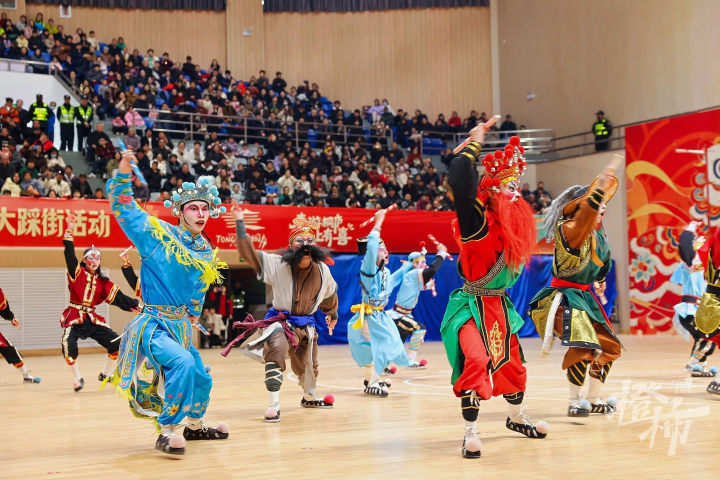 传统民俗之外,科技元素也惊喜亮相。十几台春晚“同款”机器人踩着秧歌鼓点,扭腰摆臂、整齐划一,让人忍俊不禁。刚劲有力的英歌舞、喜庆热烈的海阳大秧歌、惊险的特技舞狮+顶缸、灵动的梅花桩舞狮、独具岭南特色的揭阳青狮等来自天南海北的民俗绝活同台开演,让现场观众沉浸式领略中华优秀传统文化的多元魅力与深厚底蕴。