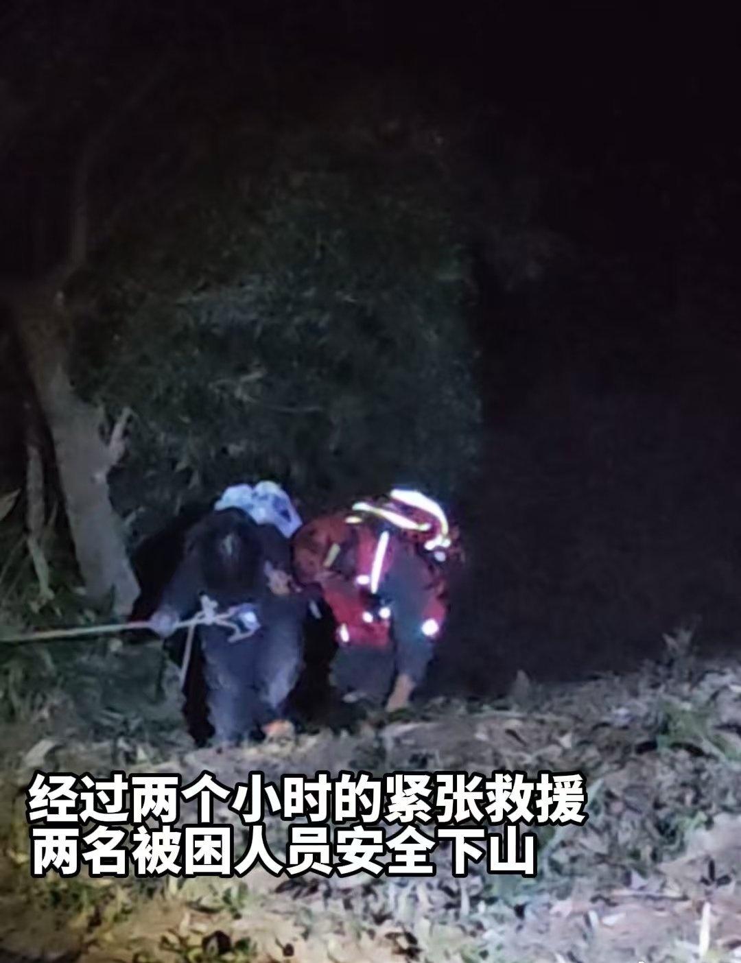 近日,浙江湖州安吉,龙王山两名群众被困情况危急,派出所接警后第一时间和被困人员取得联系,并且安慰被困人员,最终在一处山坡下方找到被困人员,经过两个小时的紧张救援,两名被困人员安全下山。