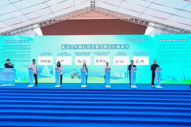 活动现场举行了庄重的承诺书签署仪式。美团、淘宝闪购、京东秒送等主要即时配送平台企业代表,配送合作商、众包企业负责人以及骑手代表分别签署了《文明出行承诺书》。大家承诺,将严格遵守交通法规,坚持使用合规车辆,自觉杜绝非法改装,摒弃交通陋习,以自身实际行动维护广州的道路交通秩序与文明形象。