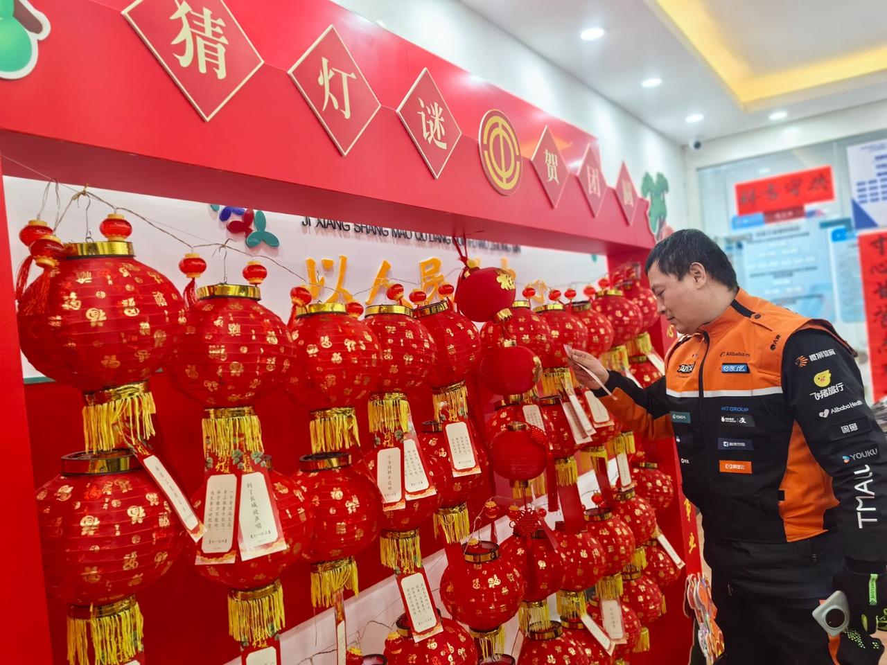 新春猜灯谜活动吸引劳动者们积极参与。