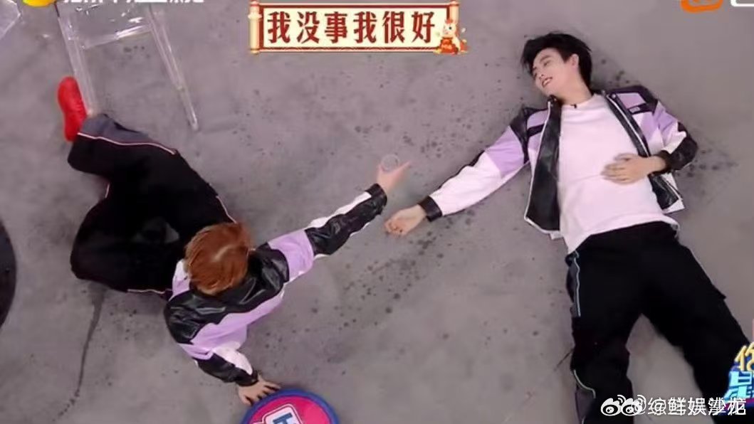 王嘉尔加陈飞宇等于人仰马翻你好星期六泼水游戏高光笑点!王嘉尔陈飞宇连输四局,第五局直接双双躺地,对望瞬间满是无奈,完美演绎人仰马翻。