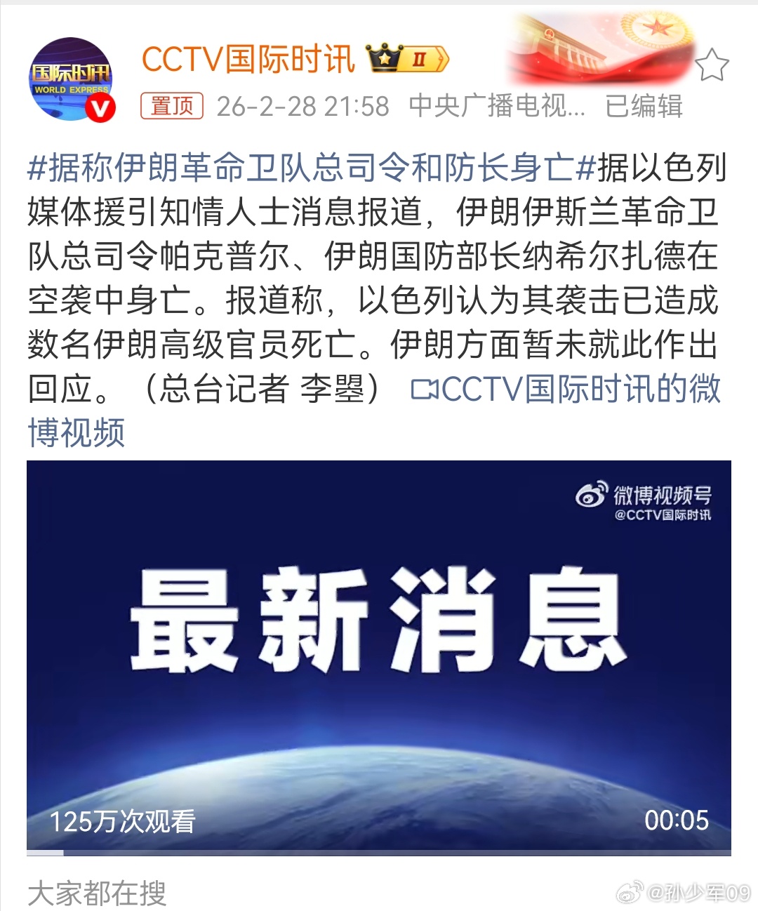 以色列又开始了,下午说是陆军总司令,现在是革命卫队总司令和国防部长至少公布一些视