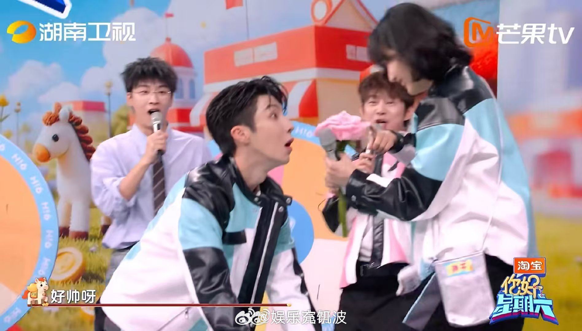 高瀚宇这一跳帅呆了你好星期六谁不爱高瀚宇这一跳!为孙千送花奋力起跳,击飞花朵后完