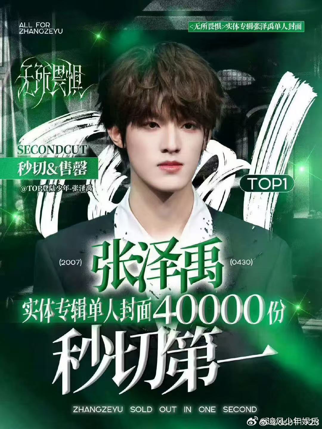 张泽禹一专秒切 真的被张泽禹一专秒切吓到,这就是顶流程度的人气,一直保持初心认真做音乐,他值得所有鲜花与掌声。