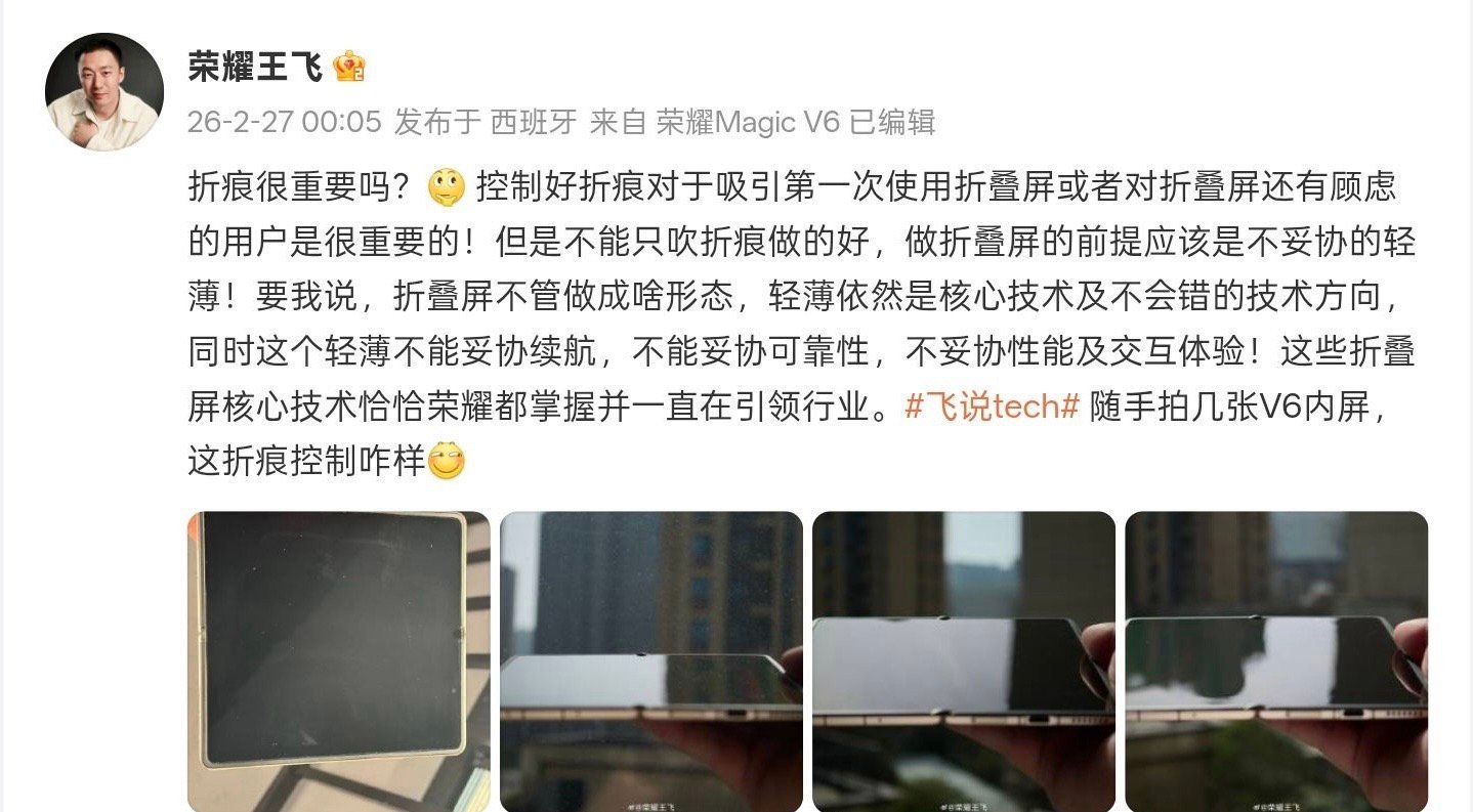 荣耀Magic V6不仅性能强,折痕控制还很不错,就等这款折叠屏手机了