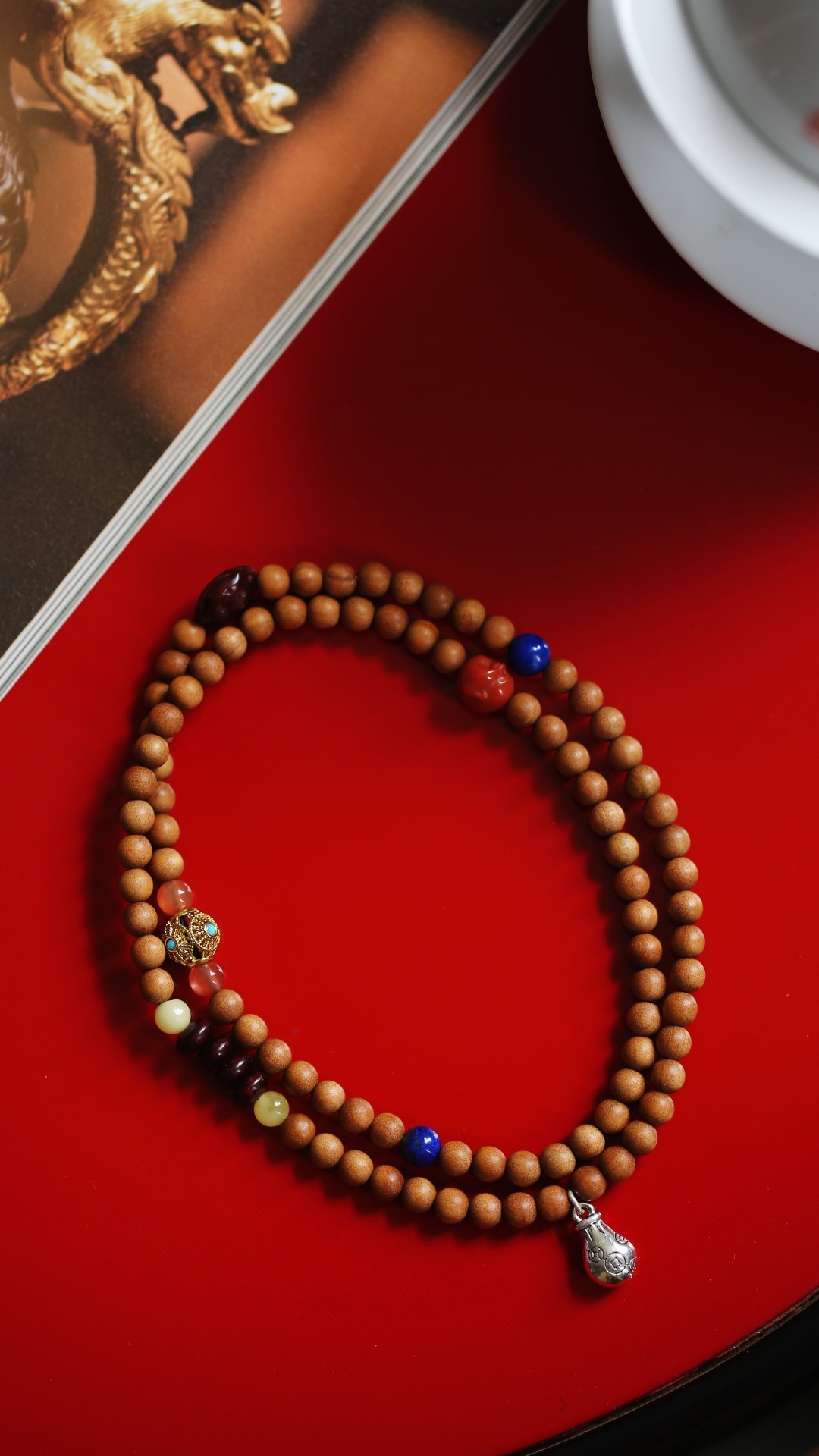 老山檀香原创【妙仪】5mm88颗老山质润,香韵甜美。配上南红蜜蜡等,非常别致。佩