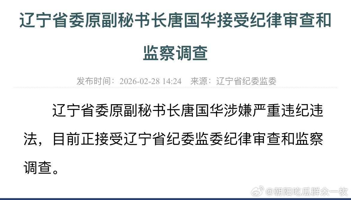 辽宁省委原副秘书长唐国华接受纪律审查和监察调查。