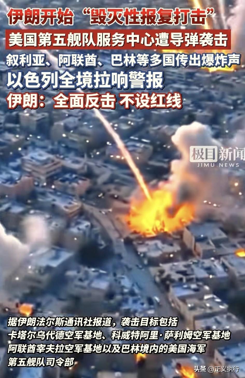 伊朗开始,不设红线的全面反击了! 根据环球网报道称,美以在对伊朗发动“先发制人打击”后,伊朗立刻对巴林、卡塔尔、科威特等国境内的美国军事基地和以色列发动了导弹袭击。 在美国和以色列打击伊朗后,伊朗也表示开始不设红线的全面反击。虽然伊朗已经强硬的表态和行动了,但是如果要打赢美以,几乎是不太可能的。 其实伊朗现在还有一个办法可以打赢这场战争,就是学习下朝鲜,任何国家动他们,他们就打韩国。所以伊朗也应如此,不论谁打伊朗,伊朗就应该全力以赴的只打以色列,因为只要以色列挺不住了,其他的国家也就跟着消停了。