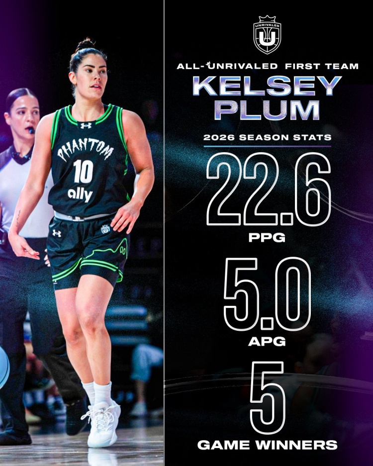 直播吧3月1日讯Unrivaled联赛官方宣布了本赛季的最佳阵容一阵,佩奇·布克斯、凯尔希·普拉姆还有切尔西·格雷当选。