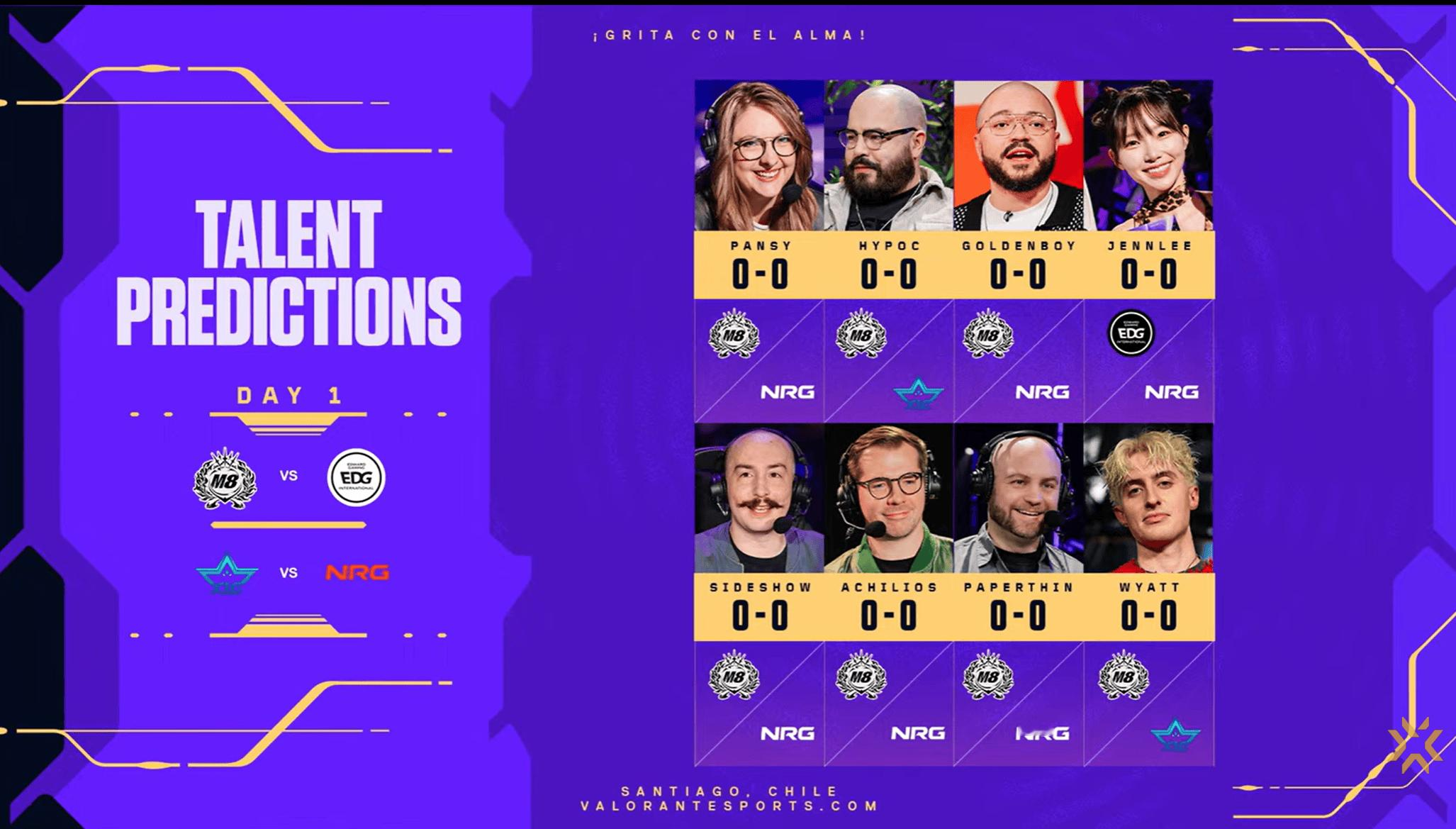第一场EDGvsM8:8人里仅1人(即太平洋主持李正贤)看好EDG战胜M8,其余7人均认为M8获胜;