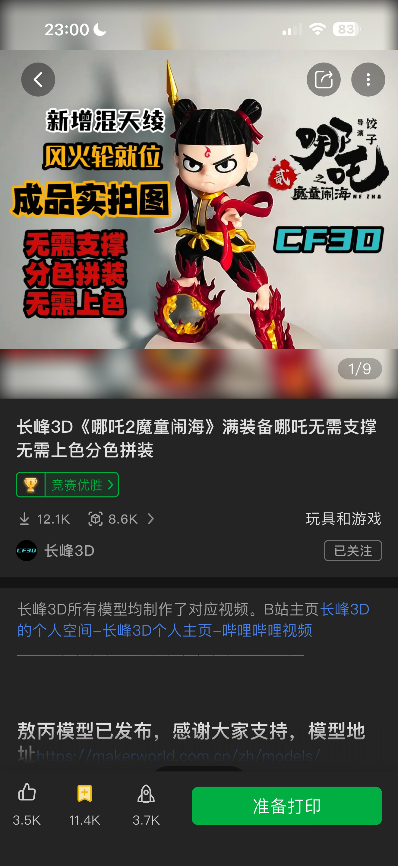 长峰3D的哪吒模型太帅了,打出来比模型提供的参考照片更好看。感觉不能全用丝绸打,