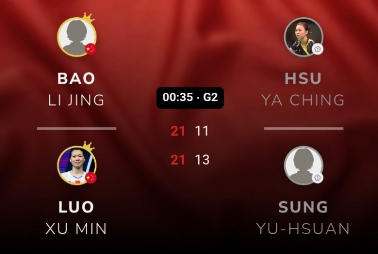 鲍骊婧/罗徐敏与队友李怡婧/王漪朵会师决赛,中国羽毛球队提前锁定女双冠军。