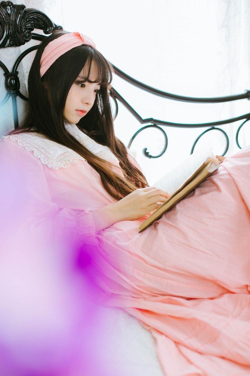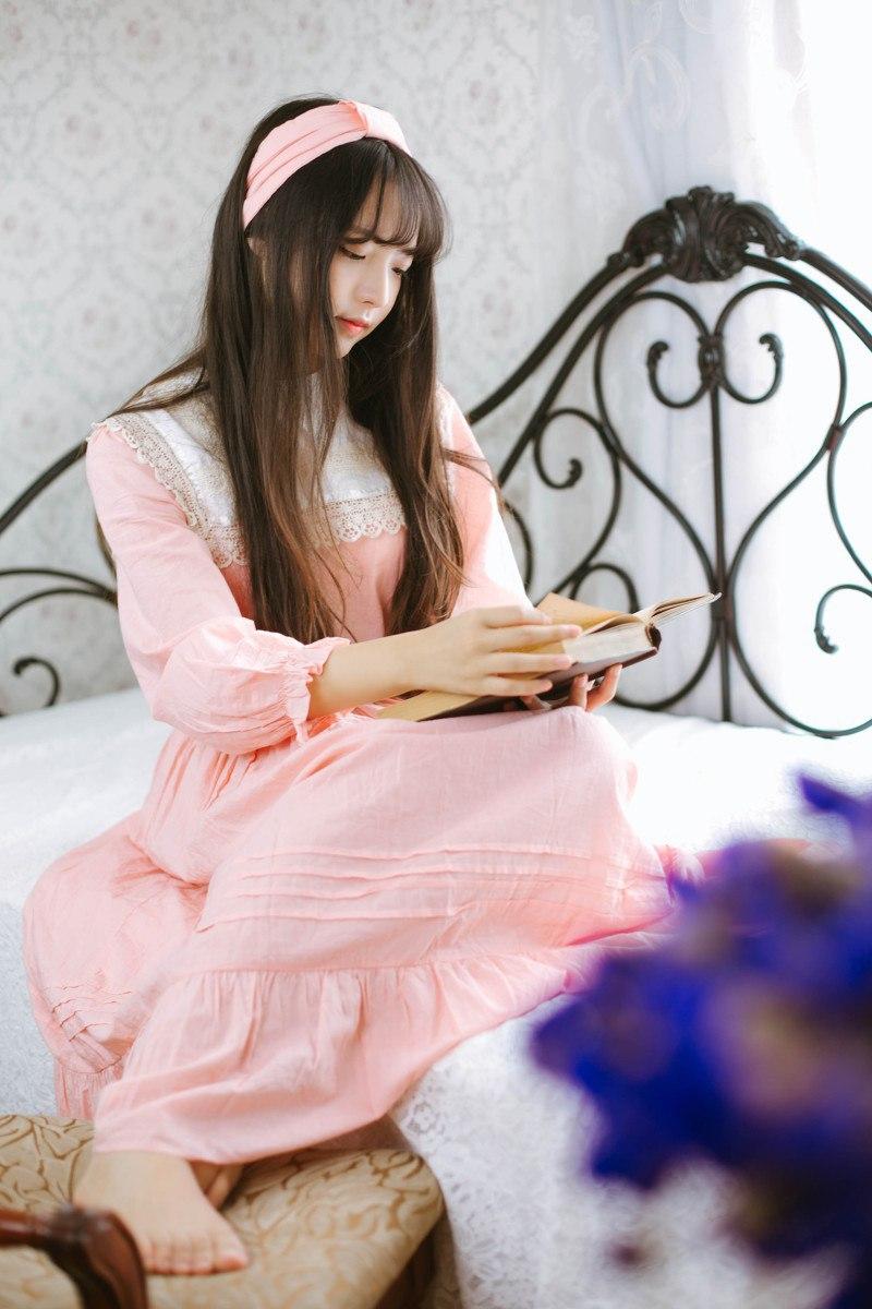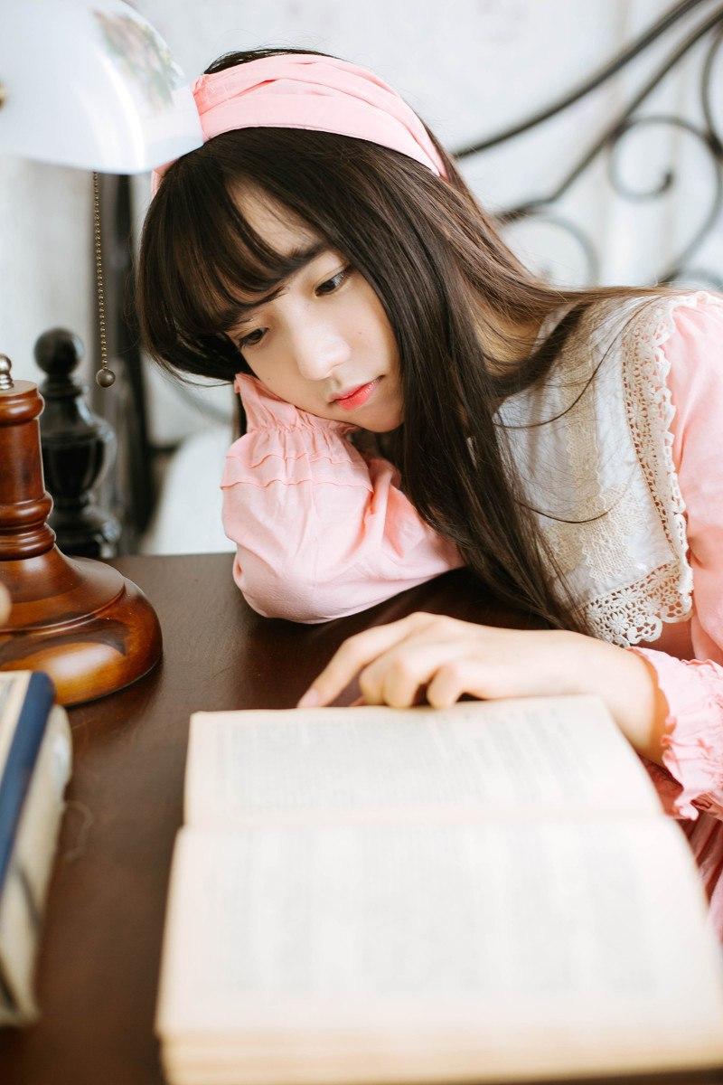 粉裙少女,沉浸在书香中,享受宁静时光。粉裙 少女 分享美少女美照 温柔花裙少女