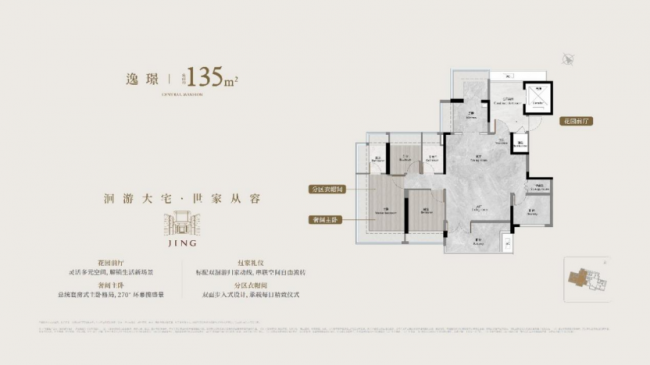 约135㎡户型,是为天河三代同堂的世家所著的生活范本。越秀基于对多成员家庭生活的理解,在确保客厅阳台满足基本质素后,将更多空间归还给卧室本身,让每一位家人的私域都足够舒适尊崇