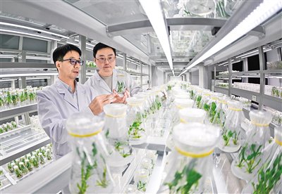 2月28日,内蒙古农牧业科学院特色作物研究所工作人员正在对甜菜遗传转化苗和继代苗进行筛选观察。近年来,内蒙古农牧业科学院以技术创新为引擎,以品种创新为核心,全方位推进粮、油、糖作物大面积单产提升行动。截至目前,该院已开展国家产业技术体系项目、国家重点研发项目等近100项,为保障国家粮食安全提供强有力的科技支撑。本报记者孟和朝鲁摄
