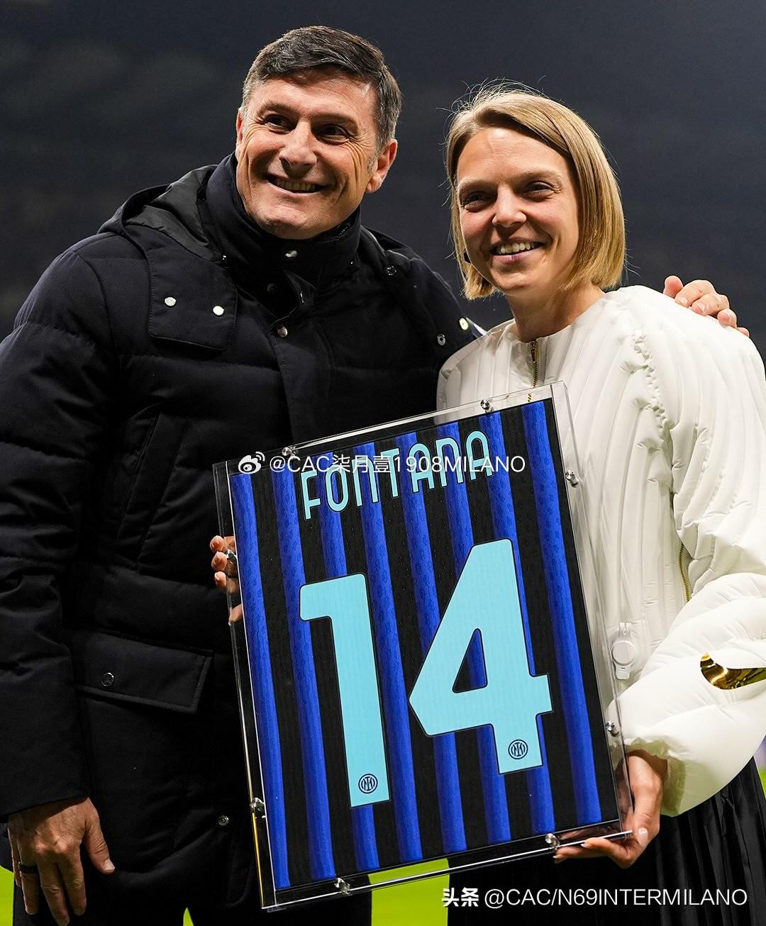 【2025/26联赛】国际米兰2:0热那亚 内拉祖里奥运冠军方塔纳也在现场💙🖤 赛前萨内蒂 向这位冬奥传奇球员赠送了一件 印有其名字的国际米兰14号球衣, 14代表方塔纳冬奥会奖牌,3金6银5铜!