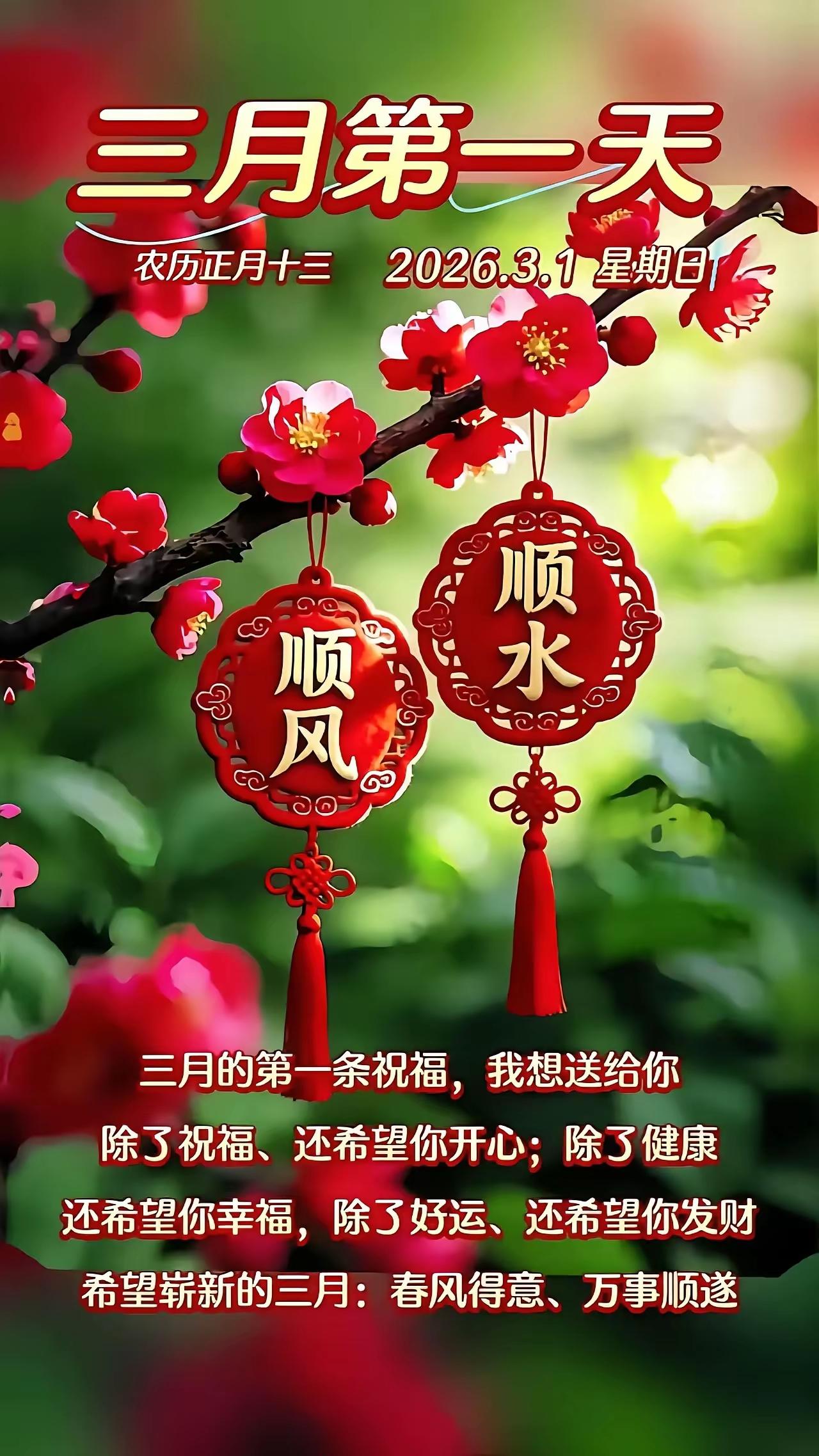 三月第一天,愿所有的美好和期待都能如期而至!年年皆胜意,岁岁常欢愉![玫瑰][福][招财进宝][大笑]