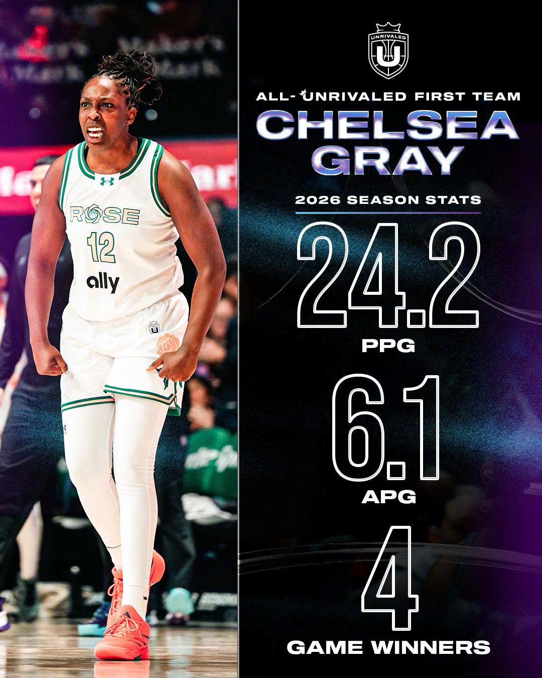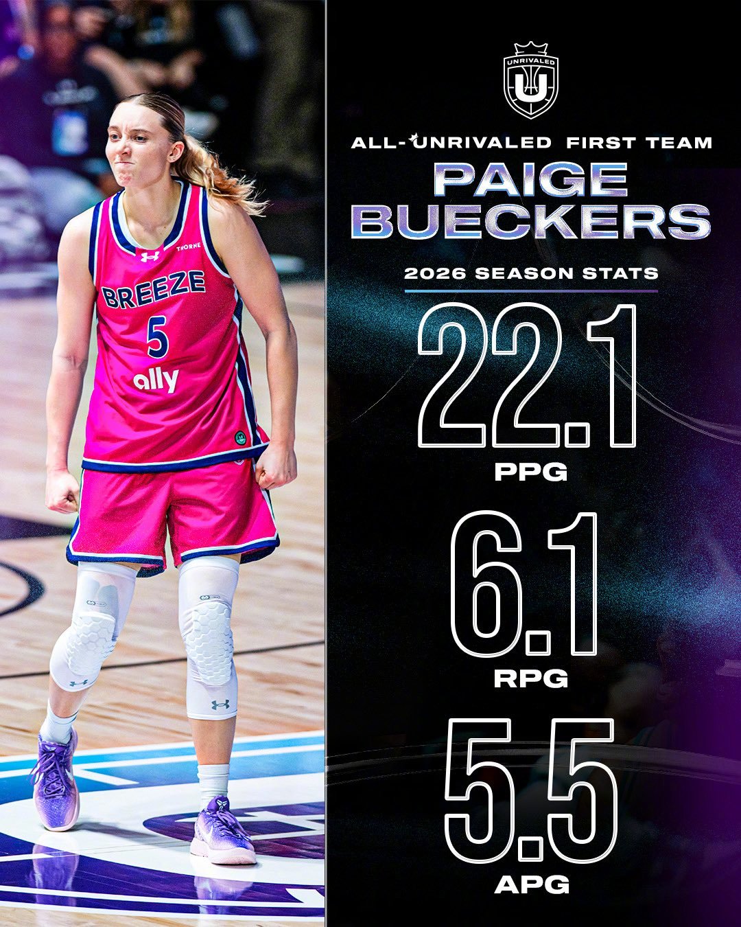 Unrivaled联赛官宣了赛季最佳阵容一二阵!佩奇-布克斯、凯尔西-普拉姆、切尔西-格雷入选一阵;布列塔尼-赛克斯、阿莉亚-波士顿、艾莉莎-格雷入选二阵。