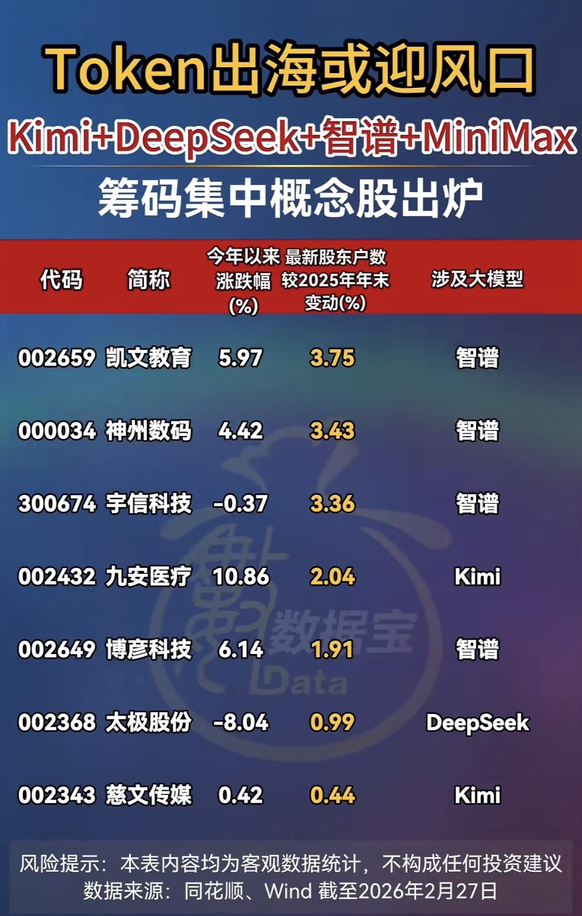 Token出海最近有新趋势,Kimi、DeepSeek、智谱、MiniMax这些名字成了焦点,相关概念股也备受关注。 Kimi背后的研发团队实力较强,在技术创新上有自己的一套,其概念股可能会随着技术成果落地而有不错表现。DeepSeek在算法优化方面有独特优势,要是能将技术优势转化为商业价值,相关股票或许会水涨船高。智谱有深厚的学术底蕴,在大模型领域知名度高,概念股稳定性可能较好。MiniMax发展势头迅猛,产品迭代快,一旦在海外市场打开局面,其概念股有望迎来爆发。不过,概念股投资风险也不小,得密切留意企业的技术进展和市场动态。