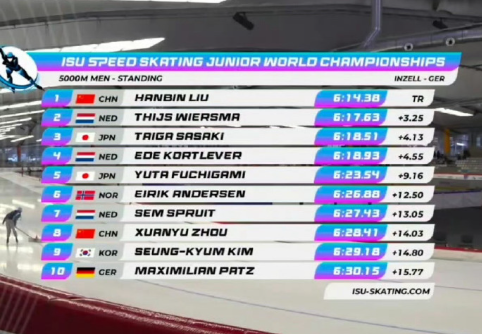 德国速度滑冰世界青年锦标赛,刘瀚彬以6分14秒38夺得男子5000米金牌!