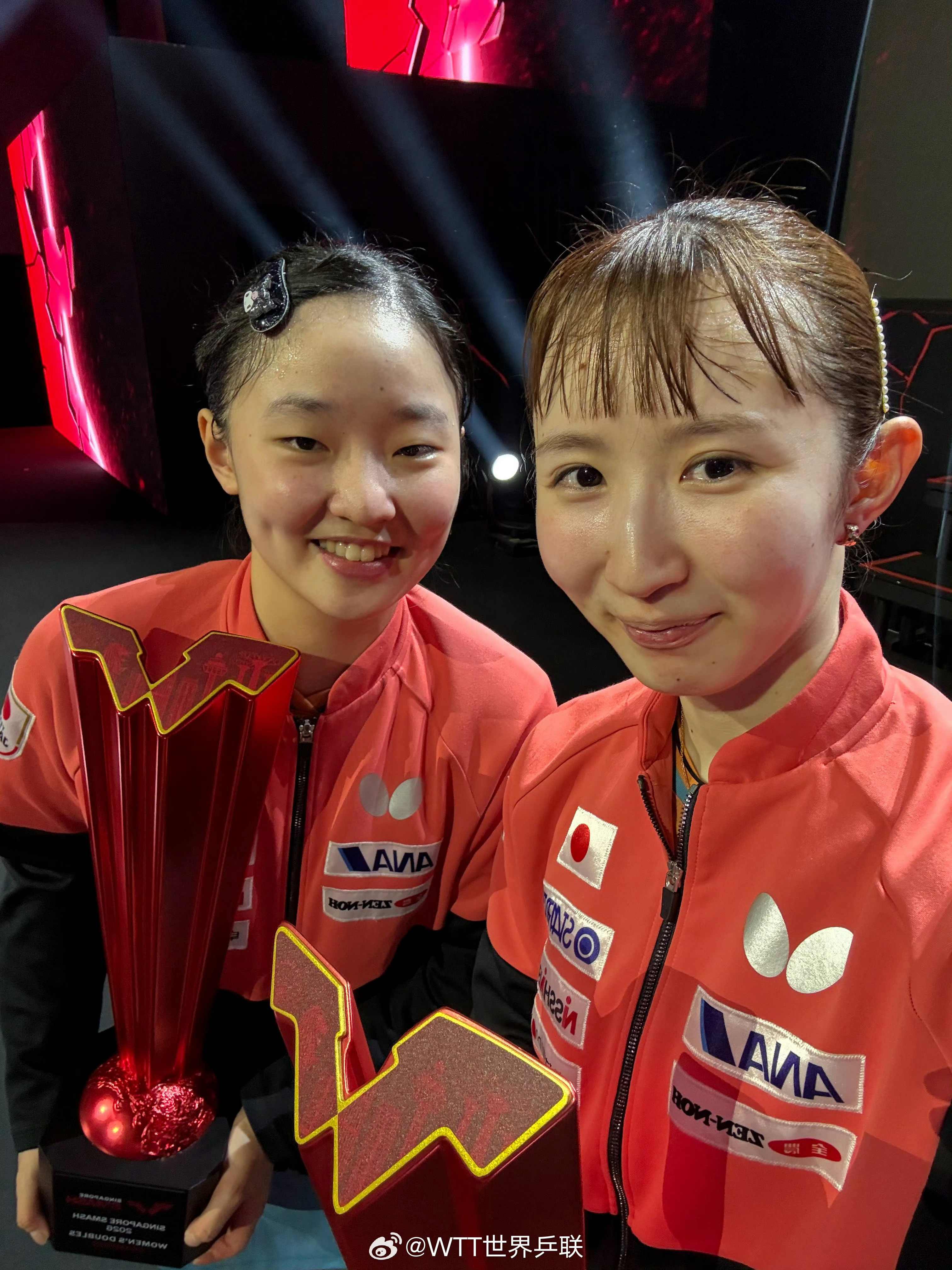 新加坡大满贯的女双和男双冠军,苹果盒(双女版)和大小布第一次捧起大满贯奖杯,洛杉
