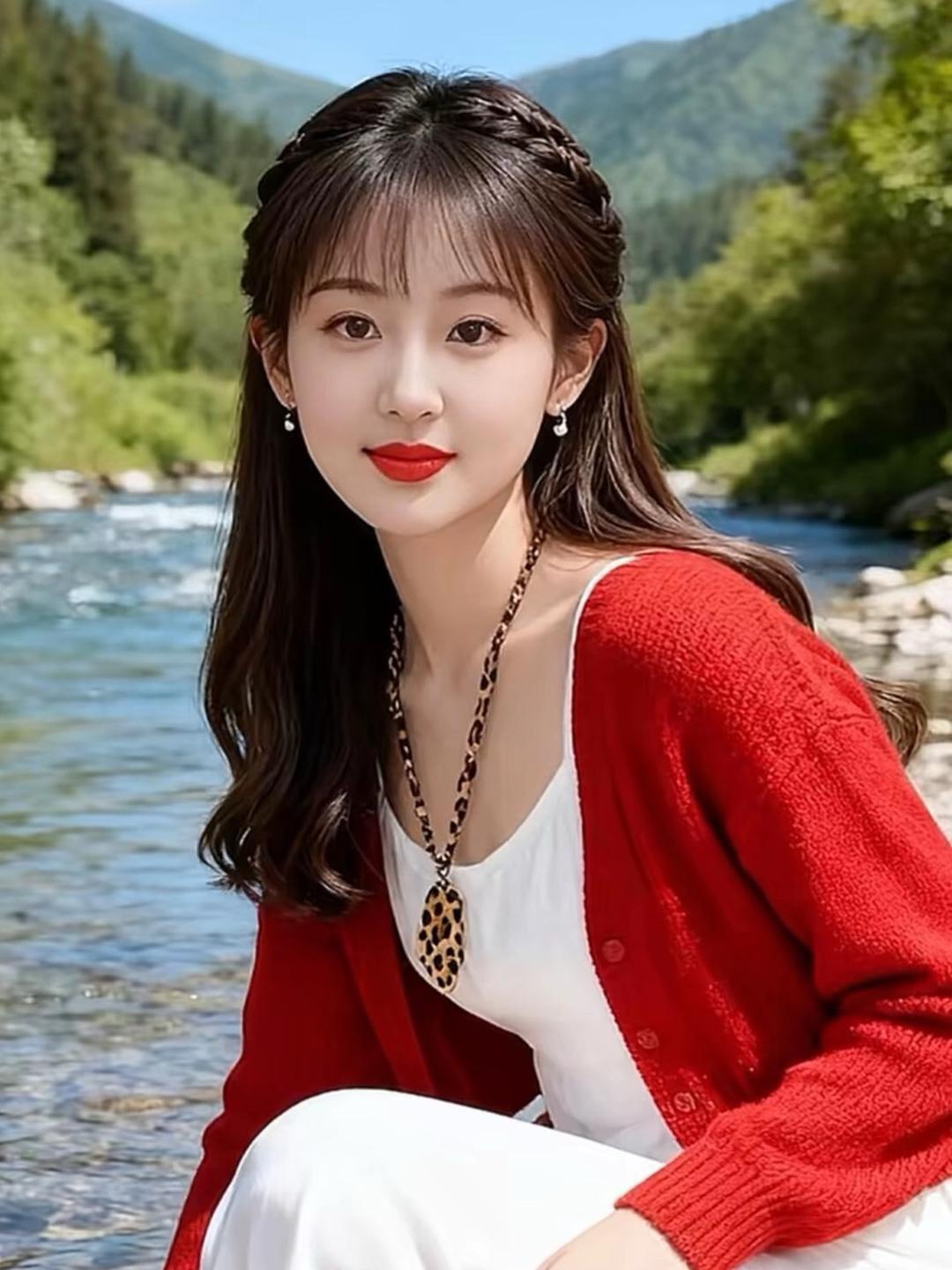 景甜造型太绝了!她身穿白色印花T恤搭配红纱裙的模样,青春亮丽又大方得体,比那些暴