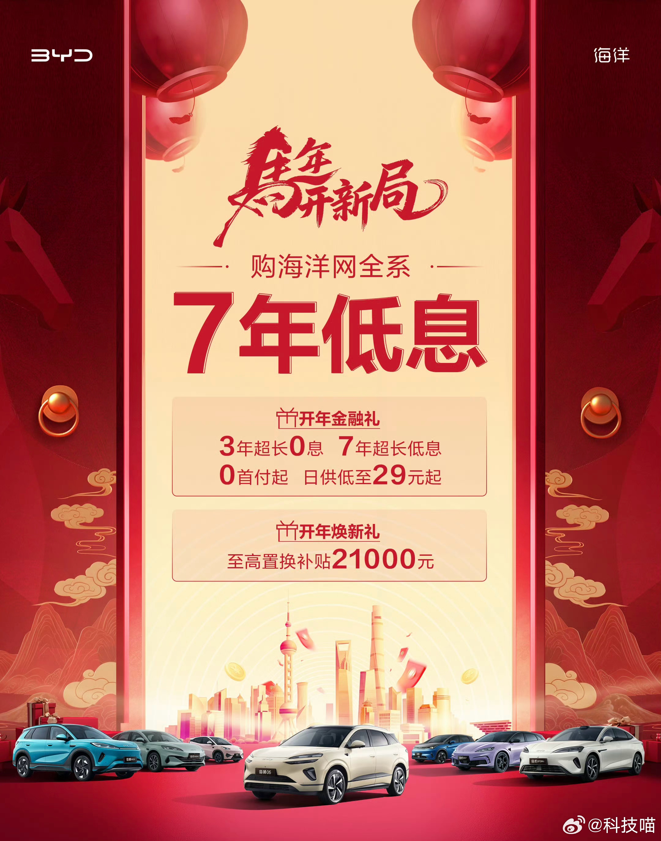 比亚迪王朝比亚迪海洋腾势方程豹都推出了7年低息买车方案