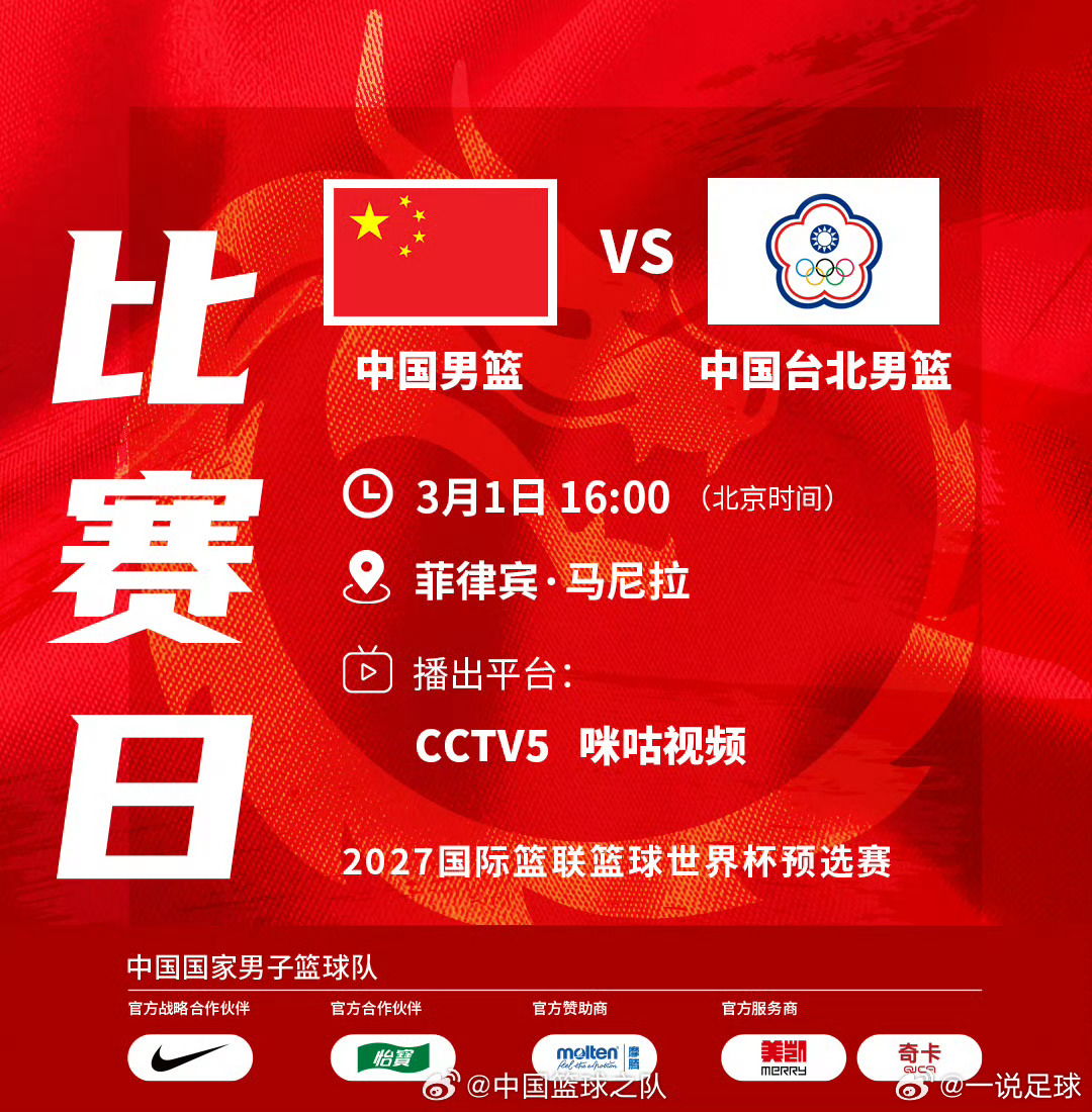 今天下午4点,中国男篮VS中国台北男篮!