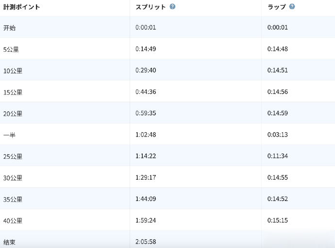 丰配友东京马拉松分段数据:半马10248,全程配速打开3分