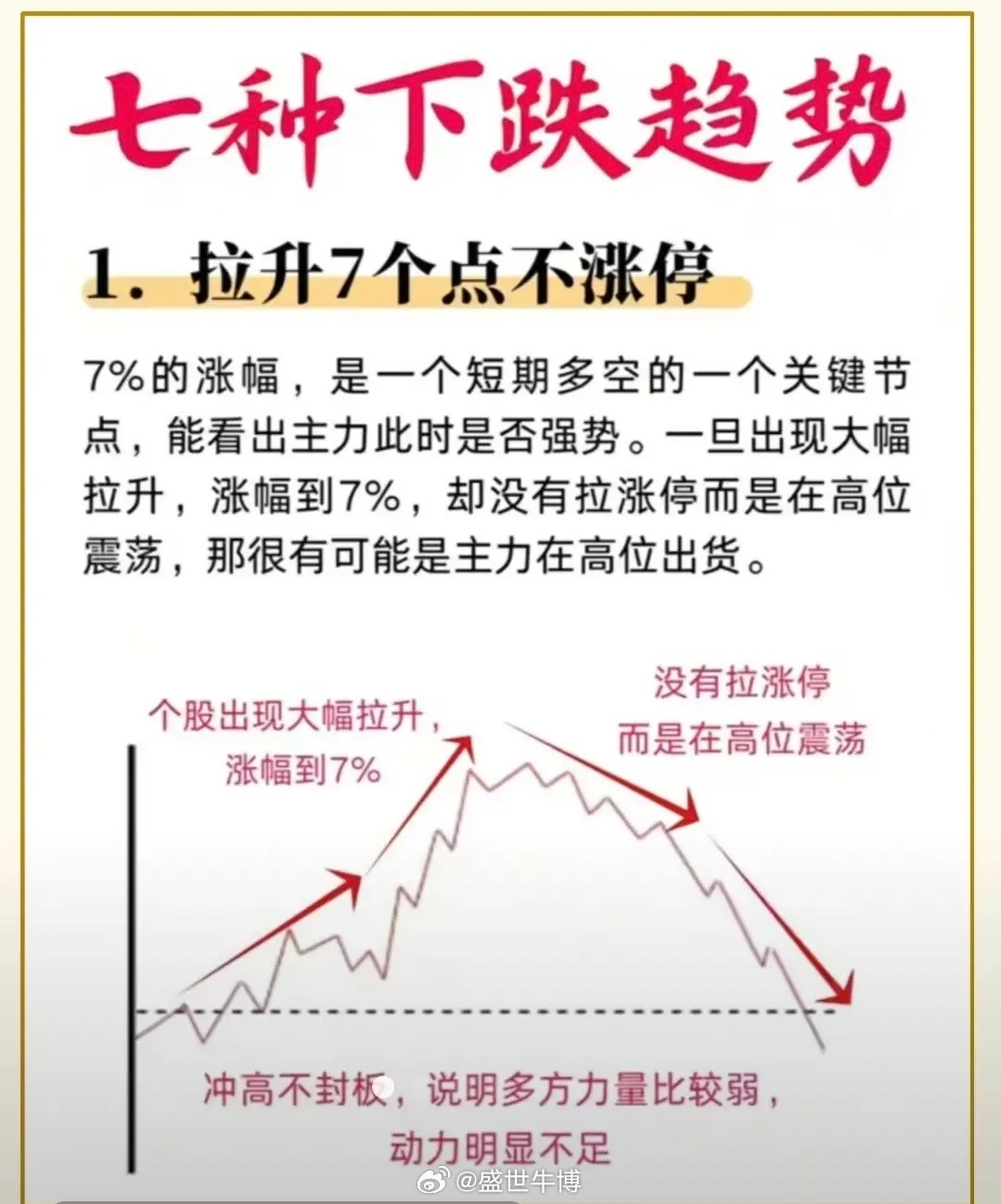 拉升 7 个点不涨停卖出。这是很经典的短线止盈思路:冲高不封板,先落袋为安。给你一句更顺、实战好用的口诀:拉升7点不封板,冲高回落果断减。操作要点:1. 拉到7%左右,迟迟不封涨停2. 分时出现冲高乏力、反复回落3. 直接分批卖出,不赌封板,先赚到手
