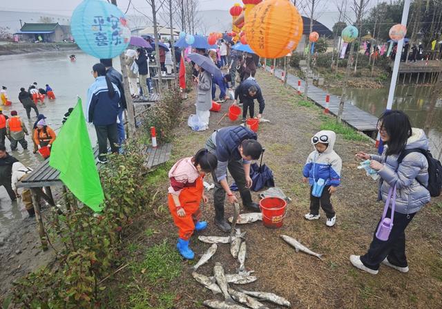 “哇,我抓到鱼啦!”泥塘里,一个满脸泥点的男孩高举着一条活蹦乱跳的大鱼,兴奋得几乎跳了起来,溅起的泥水惹得身旁的大人一阵笑。3月1日上午,金山区廊下镇溪进农场里,一场别开生面的“干塘摸鱼”闹元宵活动,让这个传统的节日瞬间“燃”了起来。
