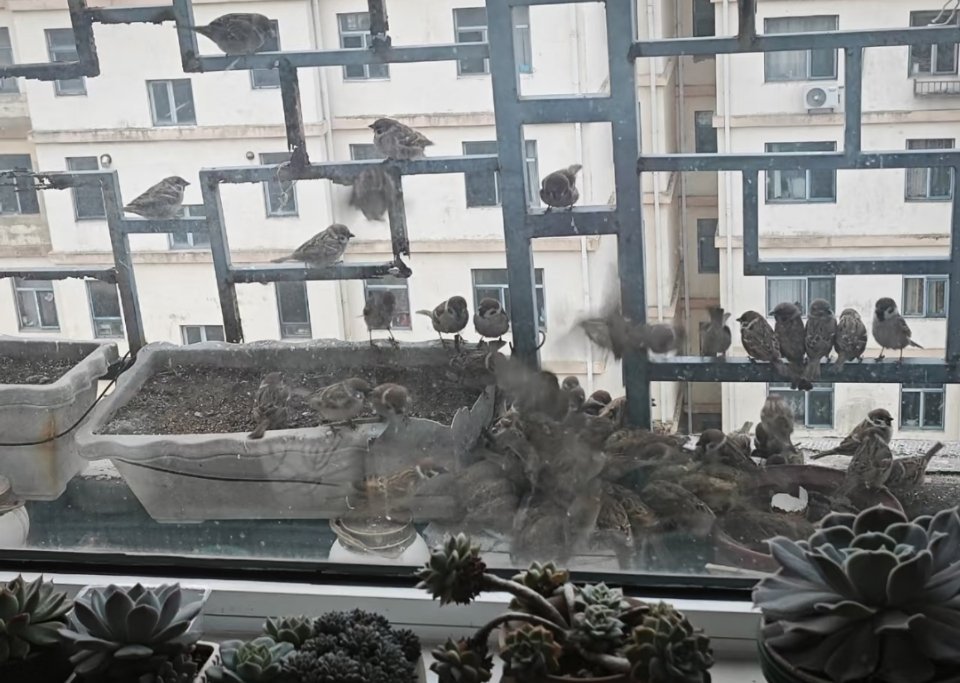好多年前的事,一只麻雀跟我家猫在窗边吵架,麻雀生气飞回去把七大姑八大姨全叫来,密密麻麻趴在我家墙上跟猫吵架。麻雀是真话痨。