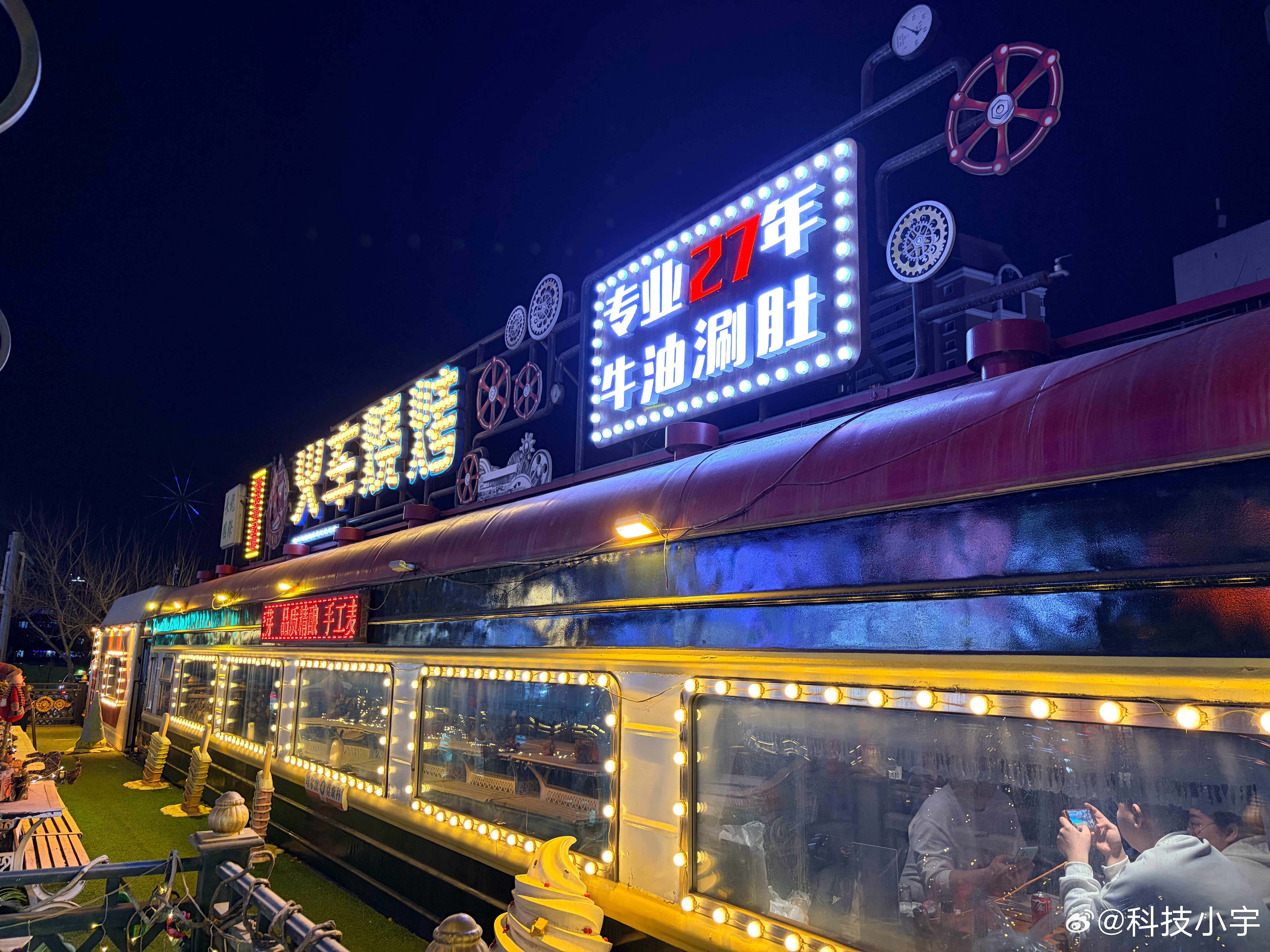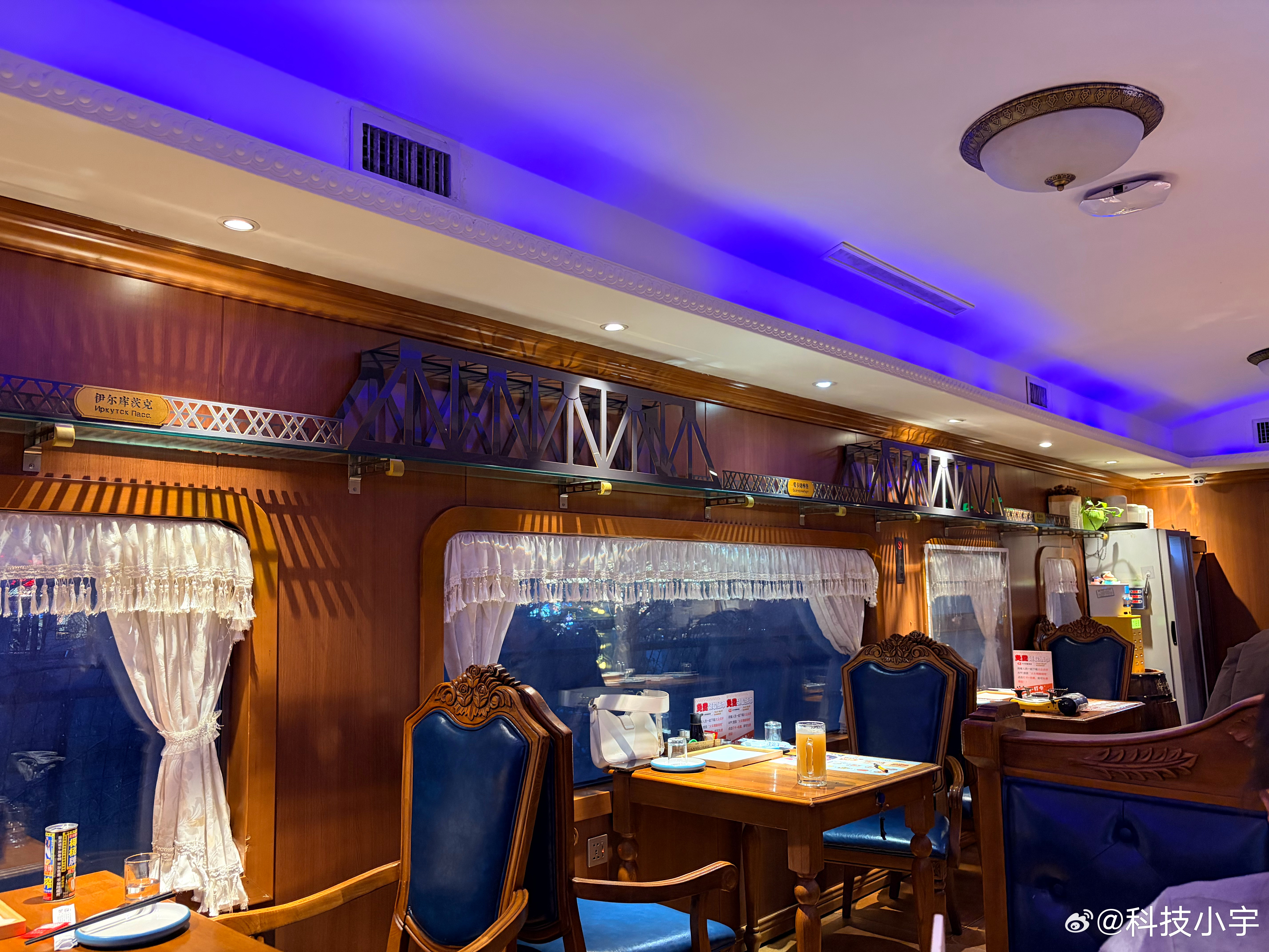 昨晚上去吃了个火车烧烤,真的是在火车车厢里吃的,装修风格、菜品味道都还不错,就是
