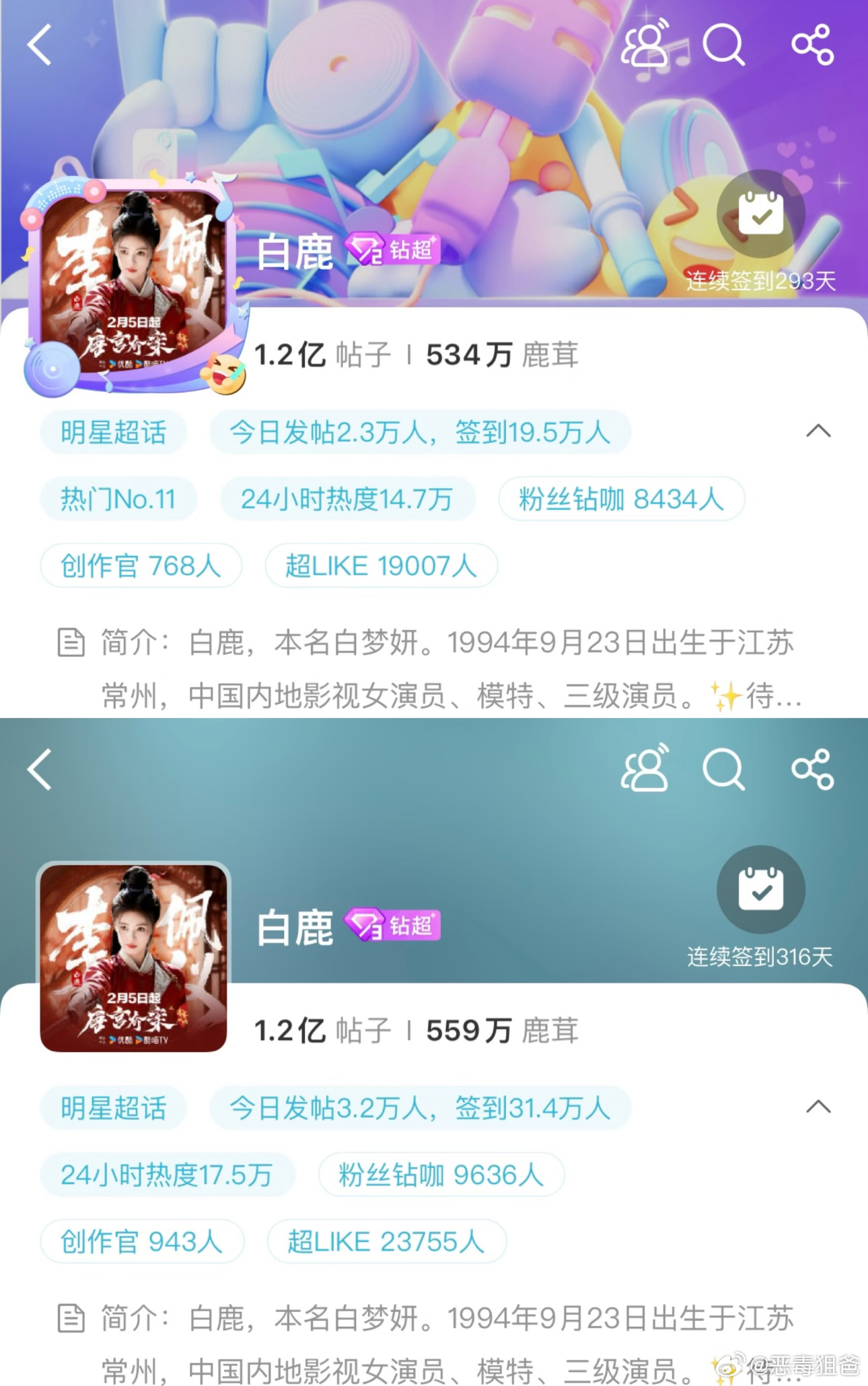 白鹿超话连续两天爆了作为🌸能做到超话爆的没几个白鹿唐宫奇案全方位不瘸腿📊🈶收官日📊对比都大幅上涨云合集均要突破1700w了