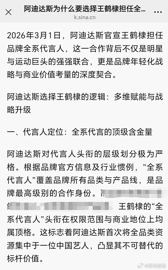 阿迪达斯以王鹤棣【商业价值】【品牌调性】【个人IP】【95后顶流】选择王鹤棣作为阿迪达斯全系代言人作品傍身流量加持王鹤棣天选阿迪男
